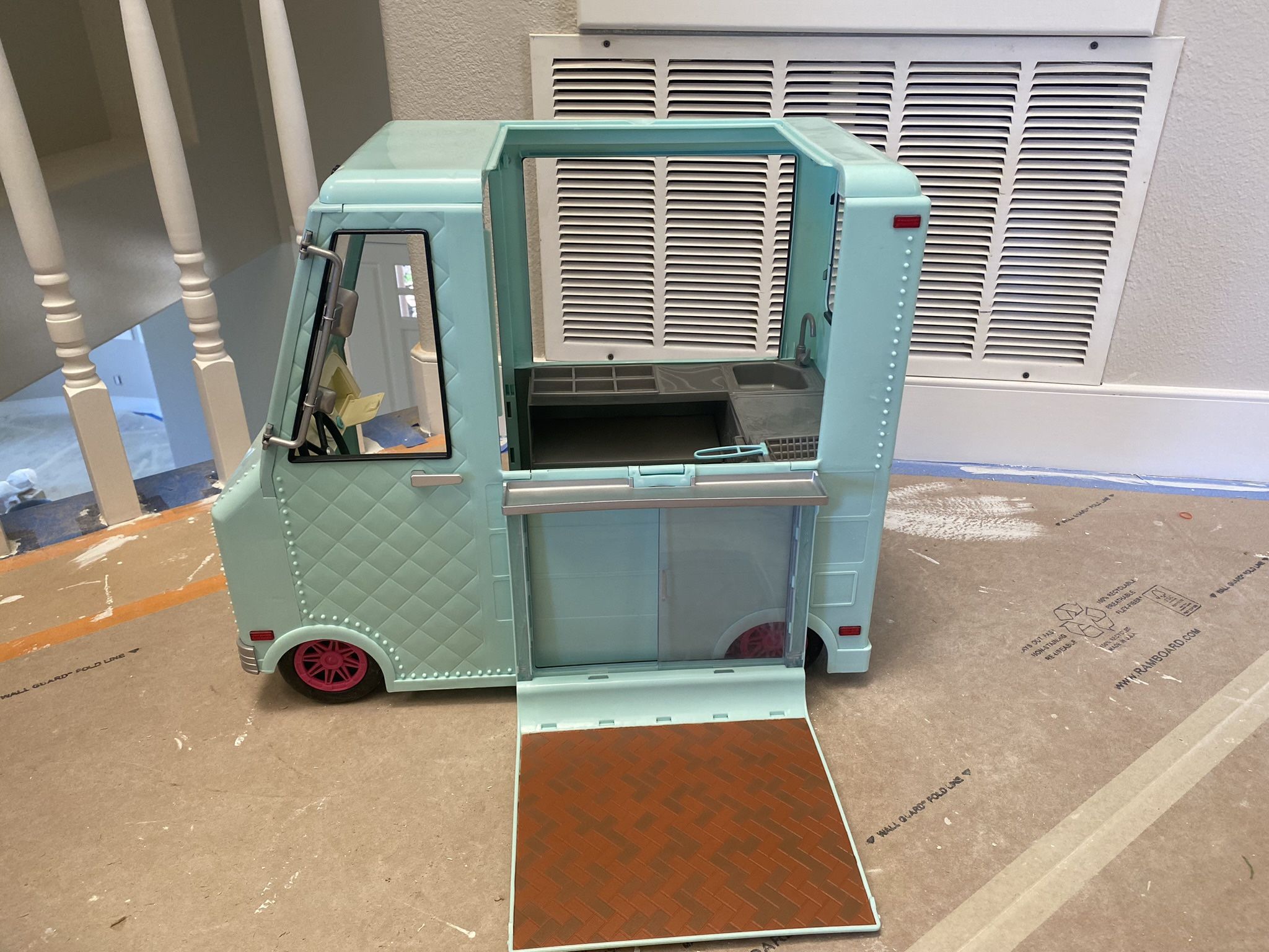 Watch your little one be a happy ice cream vendor with this Our Generation Sweet Stop Ice Cream Truck with Electronics for 18" Dolls - Light Blue. The chalkboard lets you advertise daily specials and serve up delicious treats on the go from the huge variety of lifelike food. The rains won't stop you from driving this truck around as it features working windshield wipers. Just pack up your truck and drive anywhere you like. And using the working turn signals and brake lights, you can be sure to drive your truck safely. Play one of 3 songs and tell the neighborhood you've arrived.