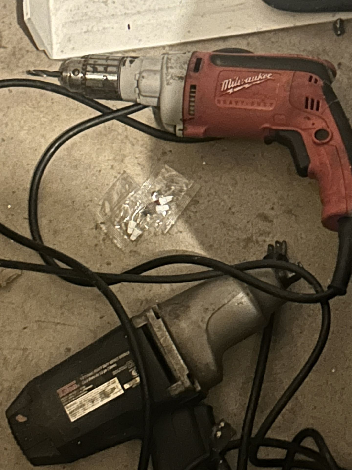 Both are used and can use A good cleaning. Cords are in good condition and both work great. Milwaukee Magnum heavy duty corded drill 0300-20 and talon heavy duty corded impact 8700. The ebay pictures are just an example of the model numbers. Sold together only