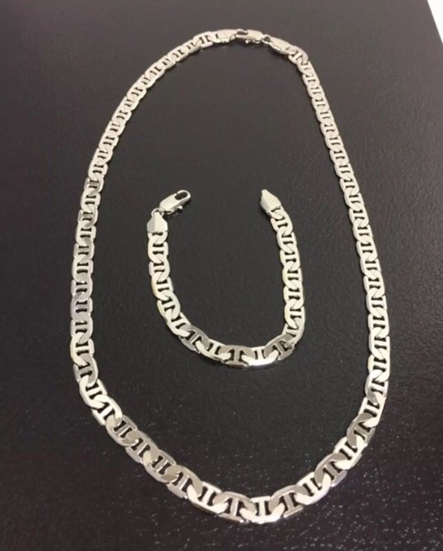 14kt White Gold Plated Set Chain & Bracelet Has a lifetime Warranty from the manufacturer $59 obo Cuban link Anchor Chain Figaro Link Rope Chain Manilla Cadena Hombre Mujer