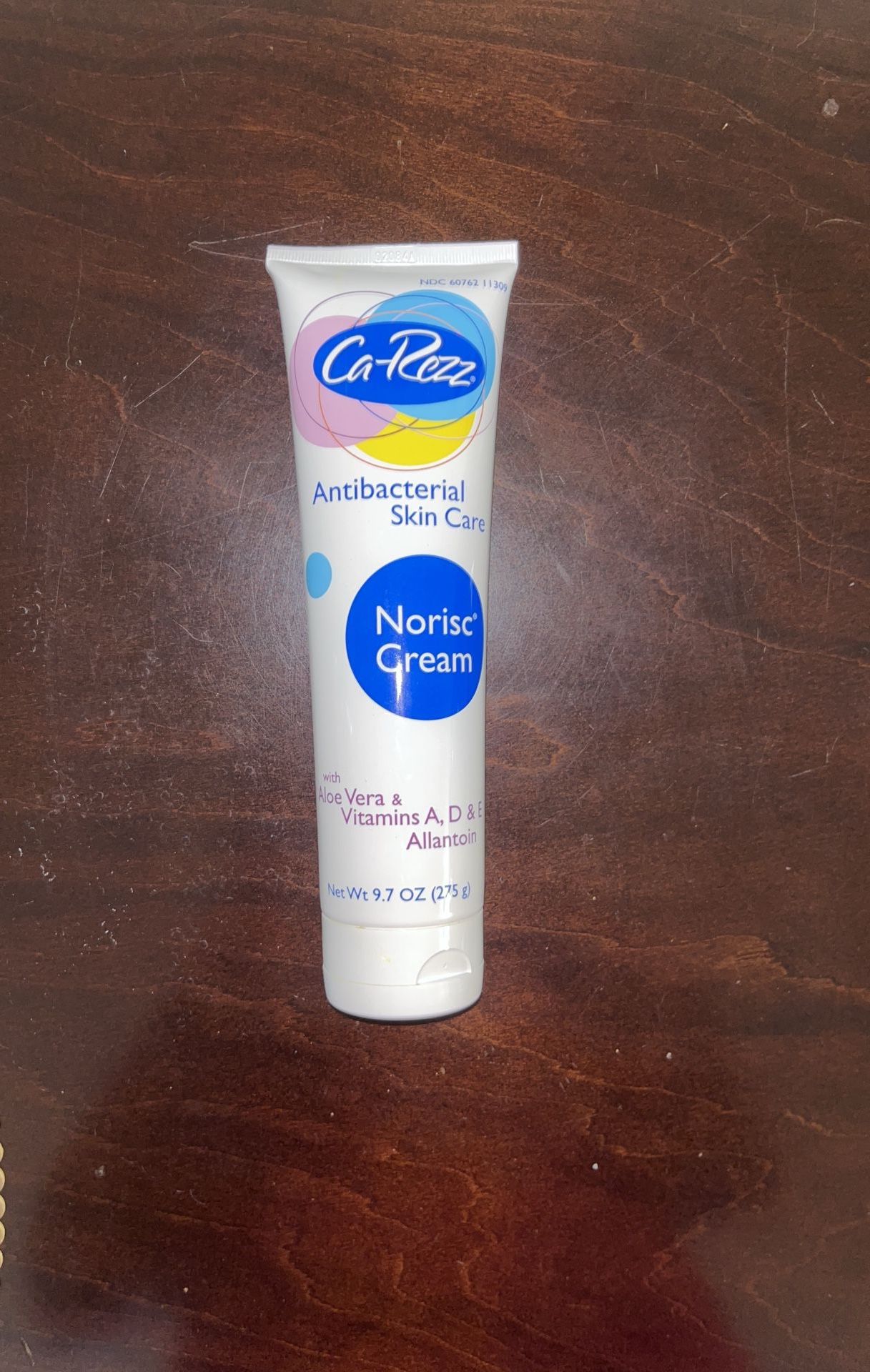 CA-REZZ NORSIC CREAM is a non-greasy antibacterial cream specially formulated to soothe skin tissue. It is ideal for use on irritated skin. Excellent for extremely dry skin, diaper rash, minor burns, chafing or itching.