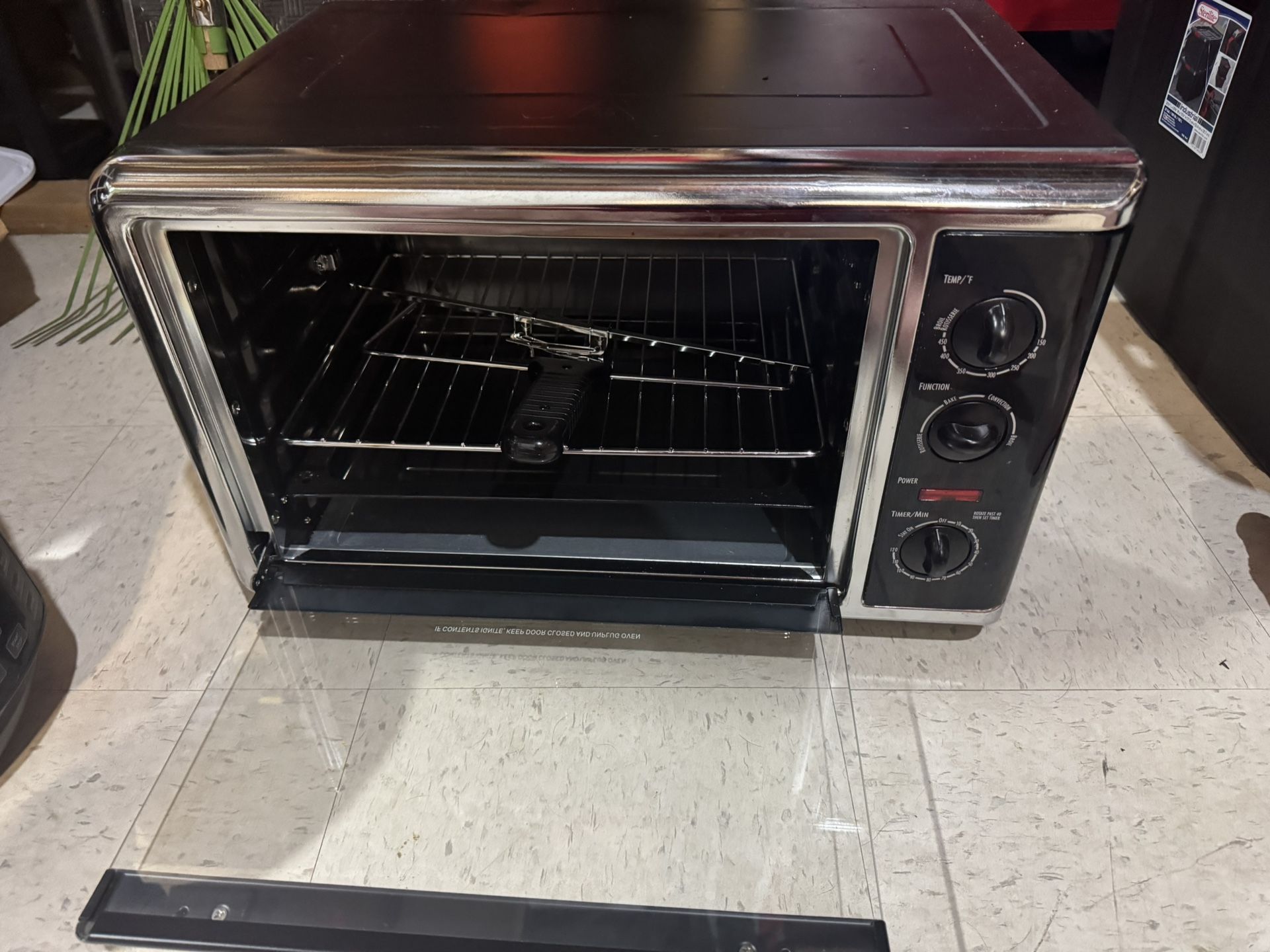 Great condition, comes with rotisserie attachment. Does bake, convection, rotisserie, and broil. 2 hour max timer. 450 degrees plus broil:rotisserie.