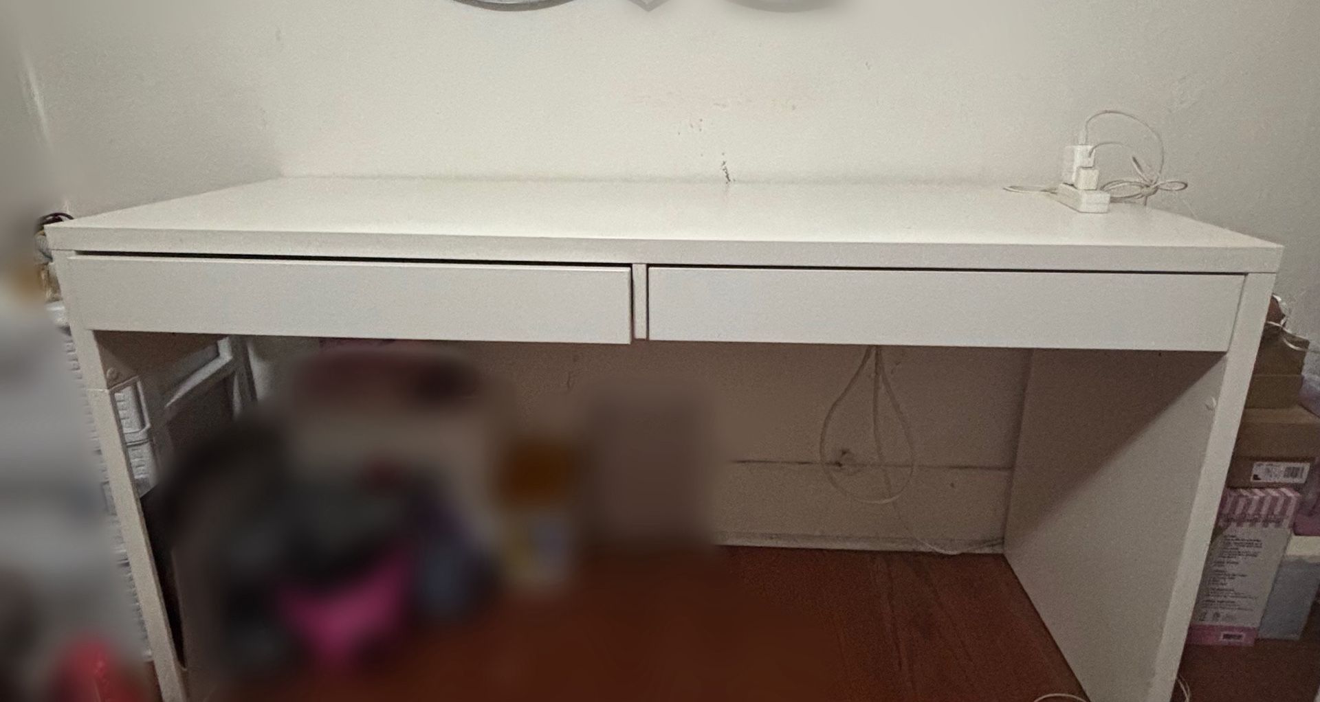 Ikea Micke Desk in white Its in good condition but the left desk drawer is slightly bent but can still hold things and open and close (can be seen in pictures) The desk itself is still super sturdy and clean no big scuffs or marks Need it gone soon! Pickup in South LA 90062