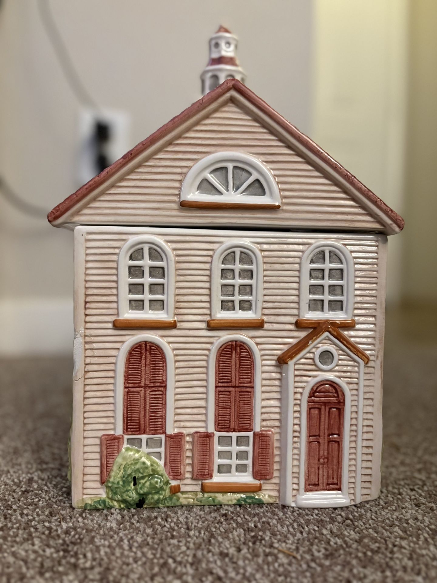 The Village Street Johnson Bros Friendly Village Large Cookie Jar Series 2. Might have been made in the 70s, can’t find an exact year but it but it is hand painted. Can also be used for kitchen storage or decor. Reminds me of the Avon spice village houses. Unfortunately I can’t make this work in my space. A chip on the side and is photographed. $30 OBO, cash or Zelle, pick up near shoreline Costco
