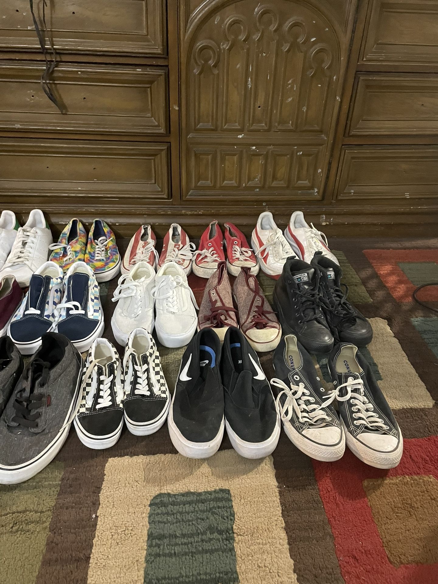 All are $10 each Adidas 11.5 men’s Vans 10.5 men’s Etnies Mens 10 Adidas Mens 10.5 Nike Mens 9 Converse Mens 8.5 Converse Mens 7.0 Maroon Converse Mens 6.5 women’s 8.5 Bill/whit checkered vans 2.5 kids White vans 5.0 men’s 6.5 women’s Blue checkered vans men’s 7 women 8.5 Rainbow diamond vans men 7 women 8.5 4th of July American flag converse 6 men 8 womens Red converse men’s 6 womens 8 White and red puma 9.5 men’s