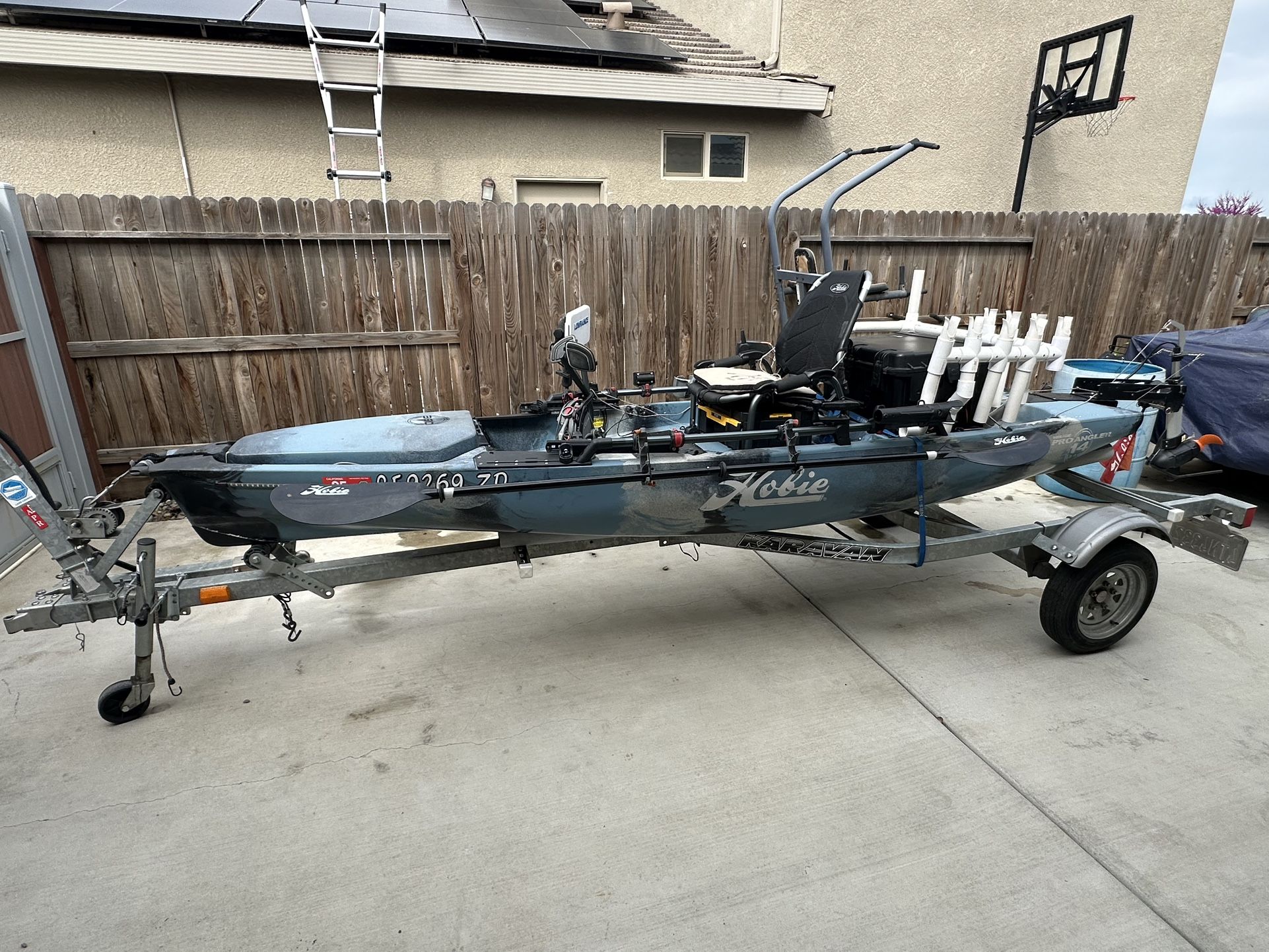 Selling my 2022 Hobie PA 14 360 drive. Includes: Torqeedo 1103 AC ultralight with rock guard 915 battery and throttle, innovative sportsman motor mount, cushion seat. Pulley system, foot steering, bumper pro keel guard, Lowrance 9Ti fish finder, 12V 20 amp lithium battery, case cruzer tackle trunk, navigation lights, custom PVC rod holders, YAK power 8 circuit Bluetooth system. KARAVAN galvanized trailer with Fulton hinge and spare tire. Kayak dolly cart with road and beach tires. DeWalt tool drawer under the seat, and extra Hobie accessories. Priced right for all the accessories that come with kayak, rather than purchasing everything separately. Price is $5200 OBO Contact Michael for more information or any questions.