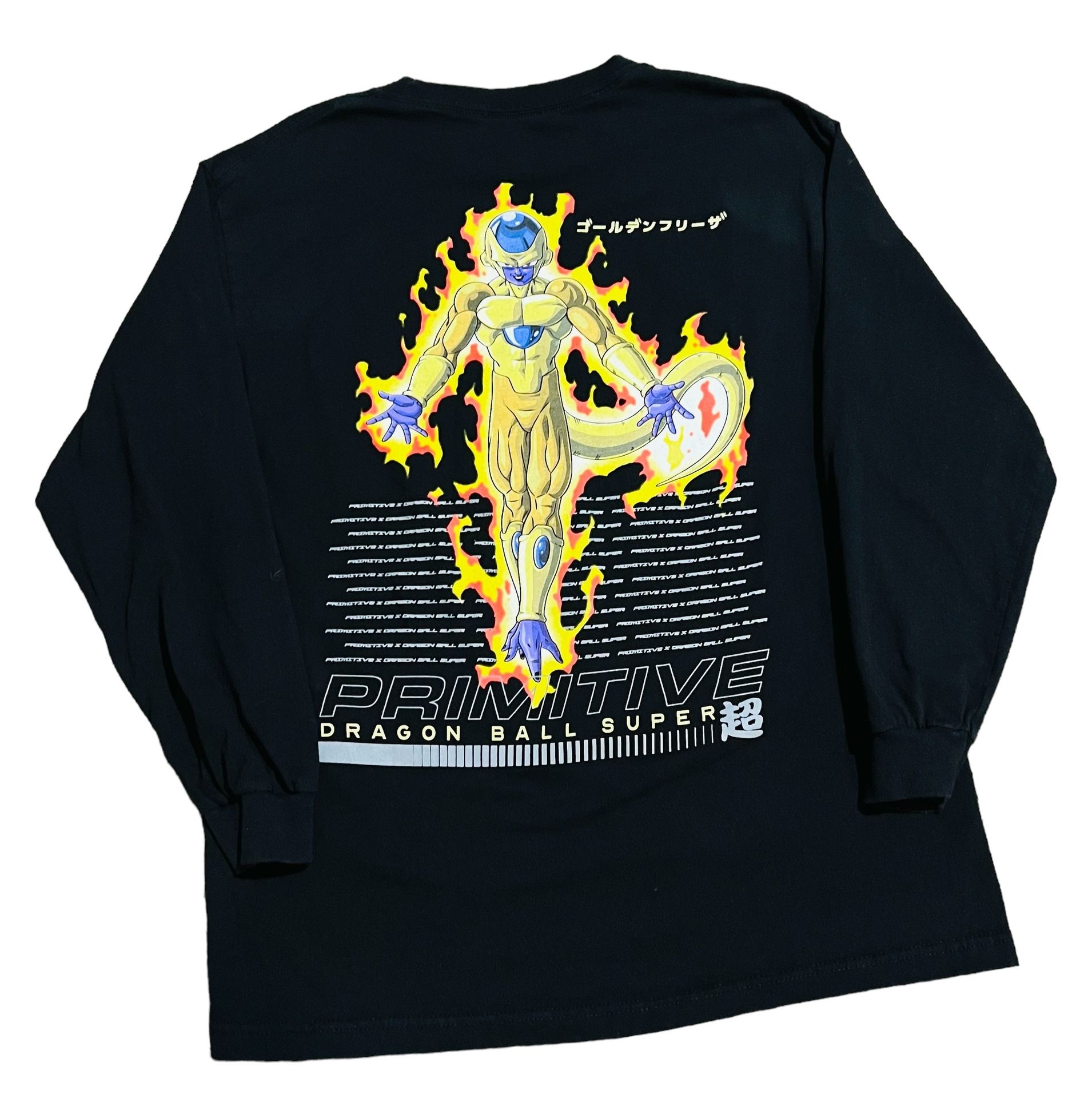 Large cotton tee, primitive x Dragonball super Golden Frieza. Pre-owned very good condition. Size: large Color: black Material: cotton Condition: pre-owned