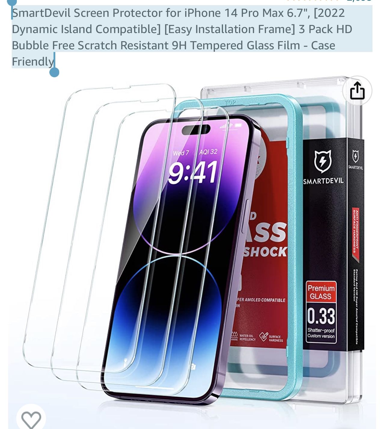 SmartDevil Screen Protector for iPhone 14 Pro Max 6.7", [2022 Dynamic Island Compatible] [Easy Installation Frame] 3 Pack HD Bubble Free Scratch Resistant 9H Tempered Glass Film - Case Friendly