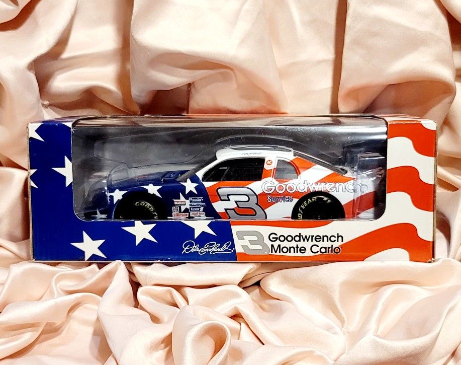 This is an unopened box of a Dale Earnhardt GoodWrench Monte Carlo race car. Also with detailed career racing highlights on the back of box