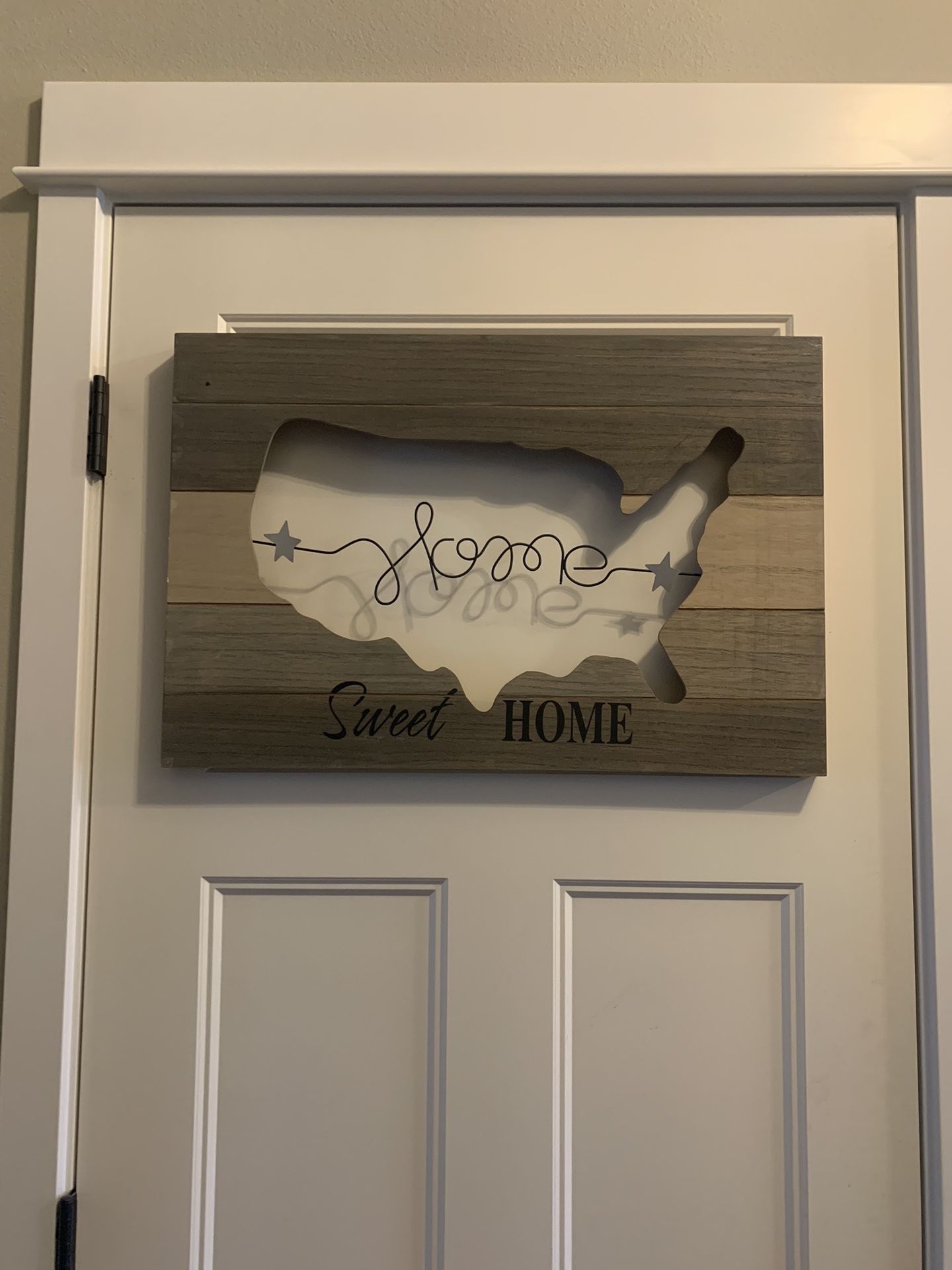 “Home Sweet Home” wall hanging. 23in wide, 16in long.