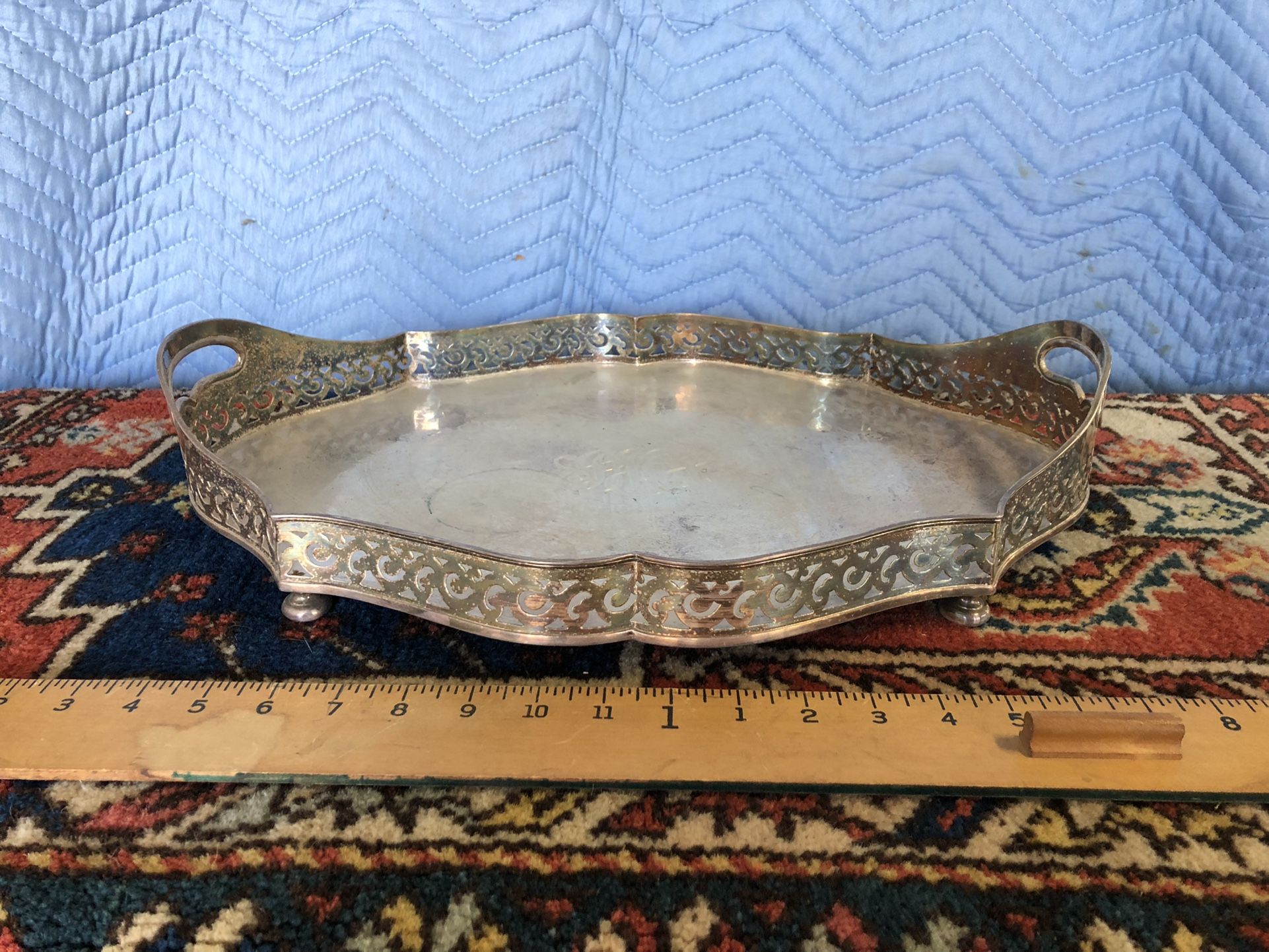 Silver Footed & Monogrammed Vintage Tray With Handles Reticulated Rim