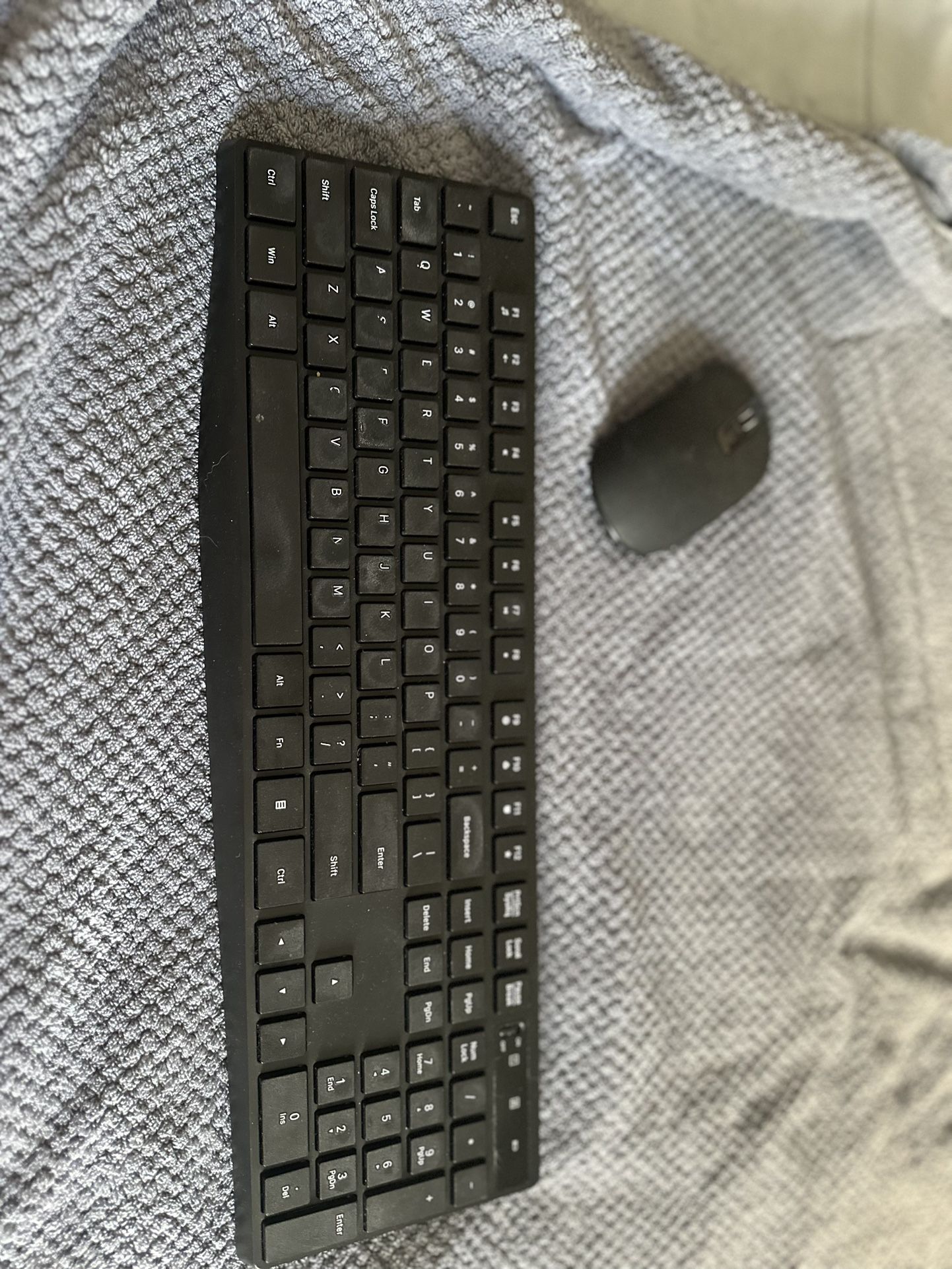 Basic wireless keyboard and mouse. Not fancy but gets the job done. Only used 3 months.
