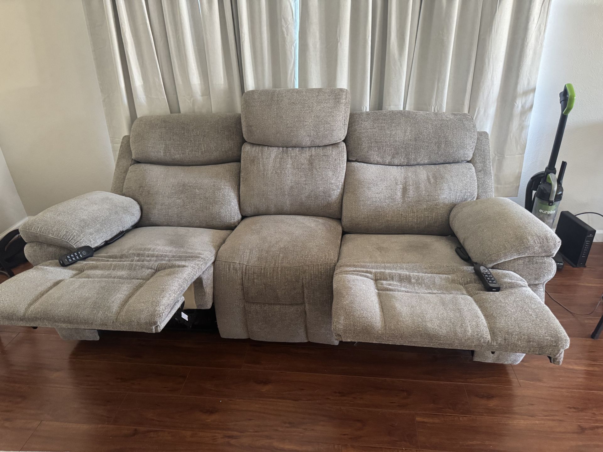 Bought 4 months ago Power Sofa Recliner w lumbar support, massages, seat warmer, neck adjustment, cup holders, phone chargers, reading lamp, No Stains, No tears, Non smoking house Moving Cant take it with 2,600 new from Jeromes
