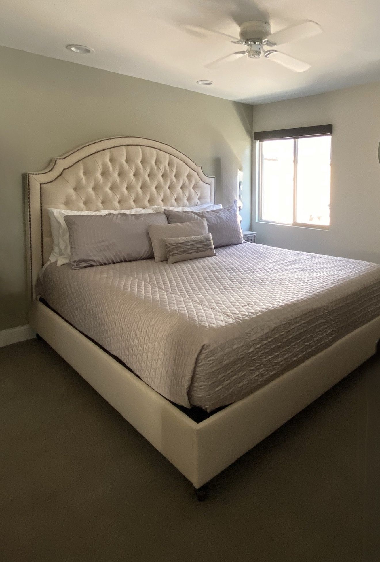 Headboard height is 69-3/4” No box spring or foundation need the bed has one it comes with