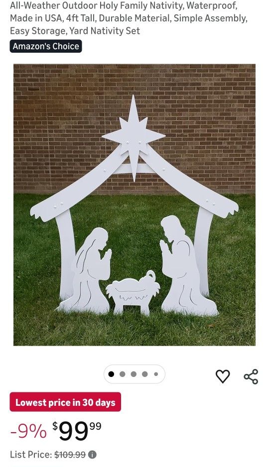 All-Weather Outdoor Holy Family Nativity, Waterproof, Made in USA, 4ft Tall, Durable Material, Simple Assembly, Easy Storage, Yard Nativity Set