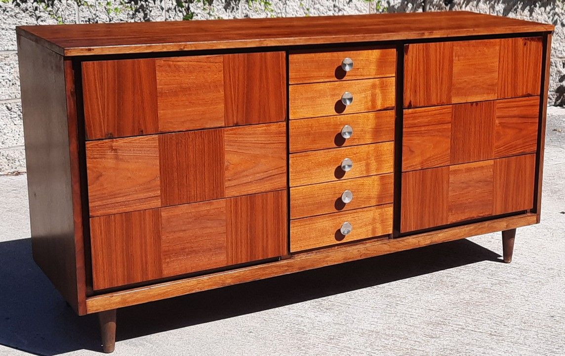 beautiful 1959 walnut all wood 9 drawer DRESSER And Others