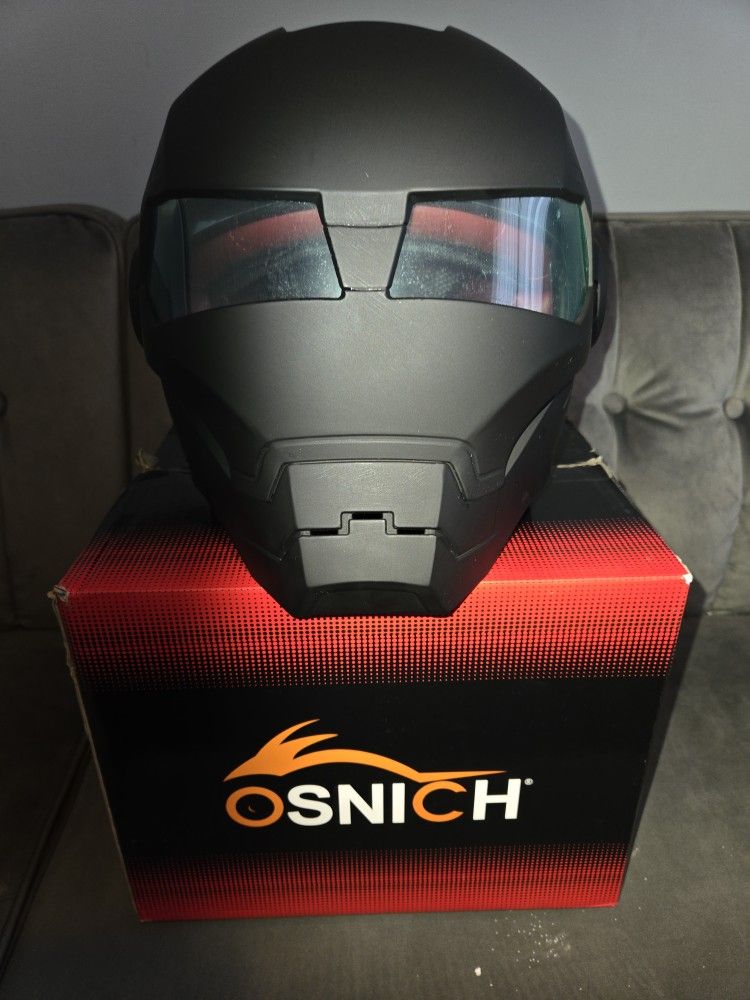New still in Box Black Ironman Retro Motorcycle helmet. New With Tags Dusk bag an Box. size L /XL will fit Med also.