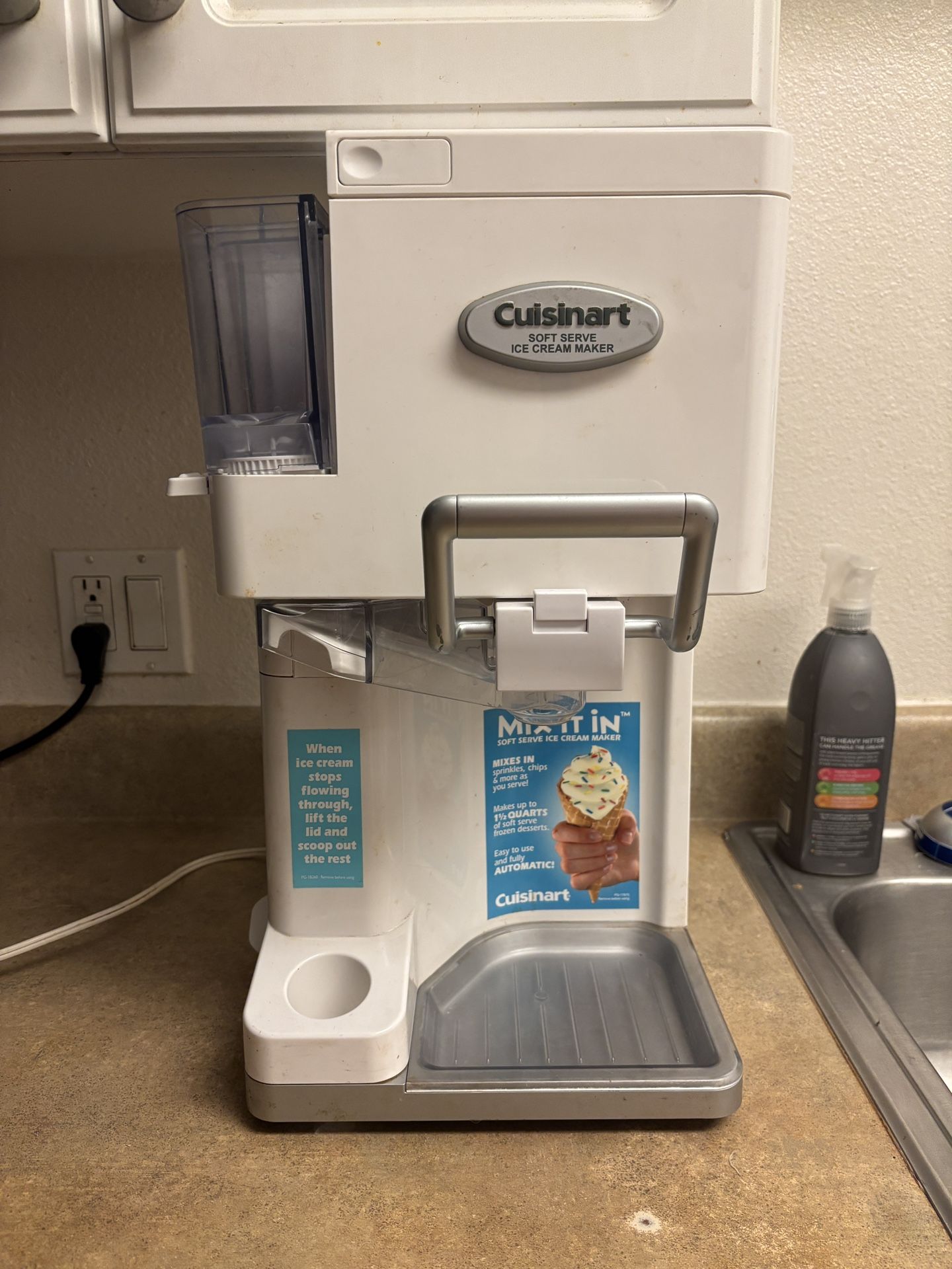 Excellent ice cream maker. All parts dishwasher safe except for freezer bowl. Makes ice cream in 20 minutes. There three topping dispensers, although two lids are missing. Makes up to 1 1/2 quarts of ice cream.