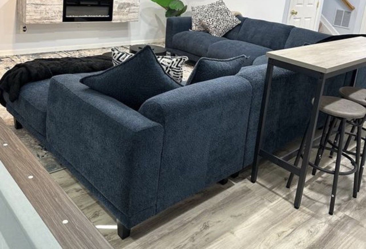Blue Four Piece Sectional couch In Great Condition.