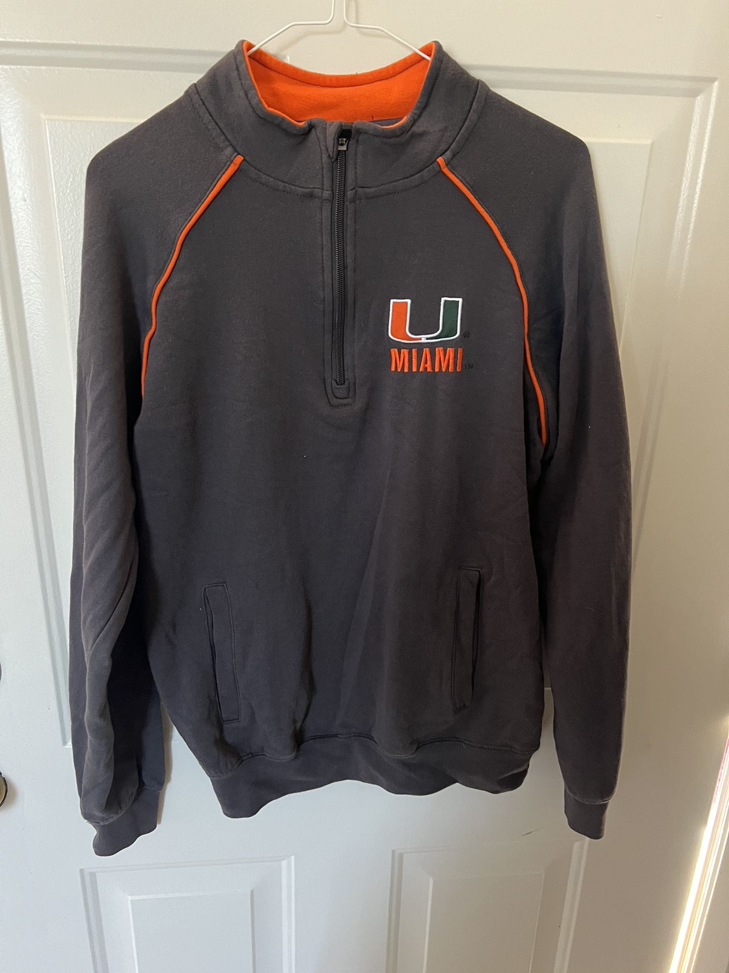 Colosseum Gray Miami Hurricanes Team Logo 1/4 Zip Shirt Jacket Men's Small