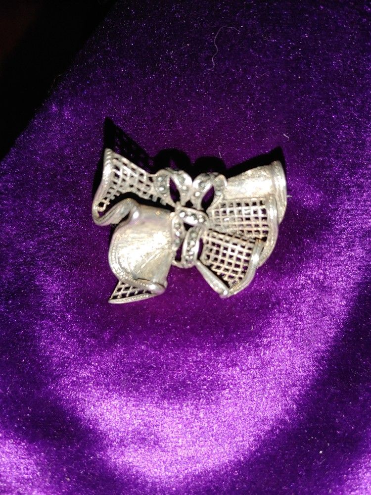 Beautiful sterling silver and Marcasite pin. Ribbon Bow pin embellished with Marcasite gems. A classic piece to wear and cherish forever.