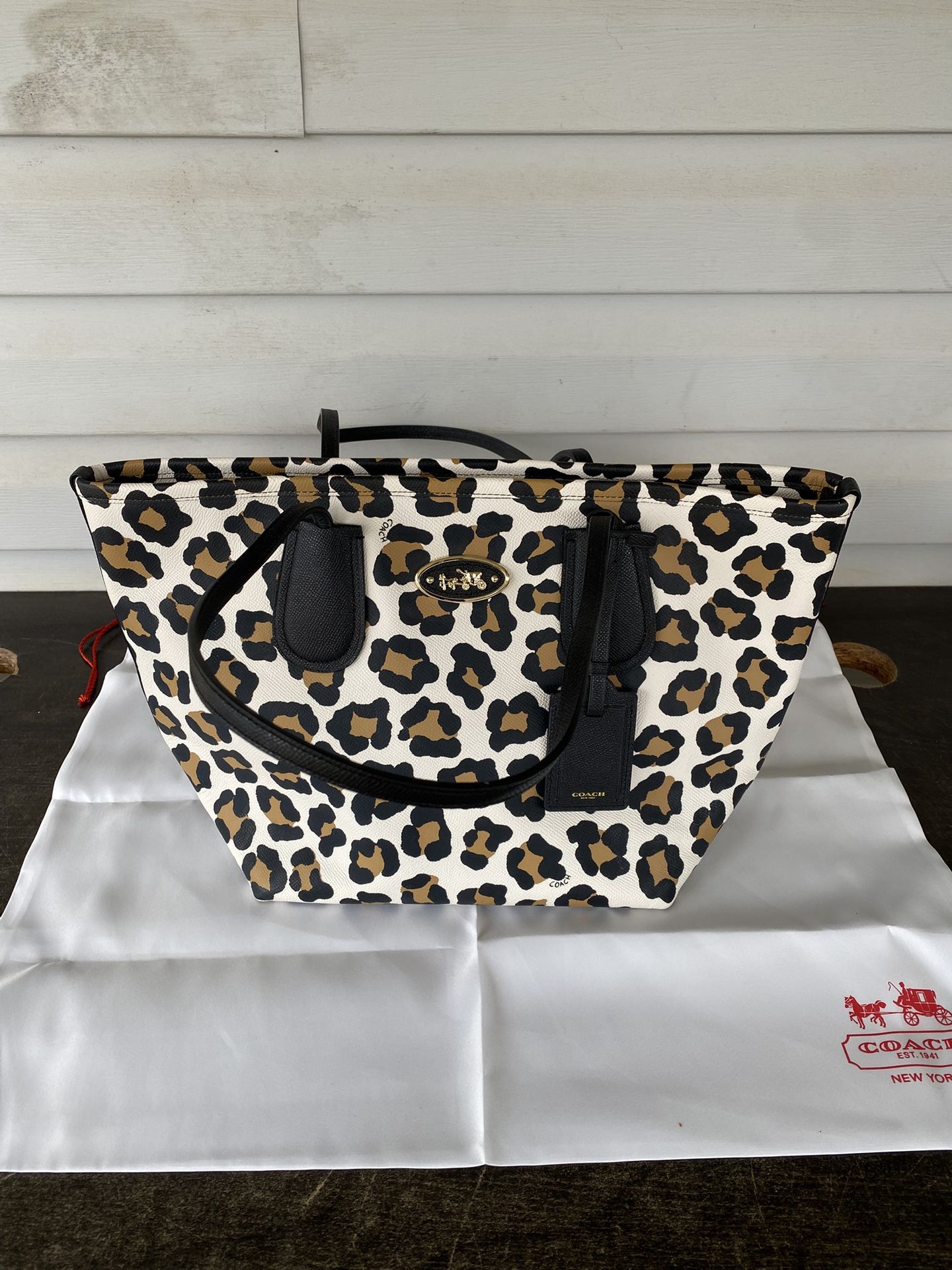 Coach Tote Bag Shoulder Bag PVC Leather Leopard Medium