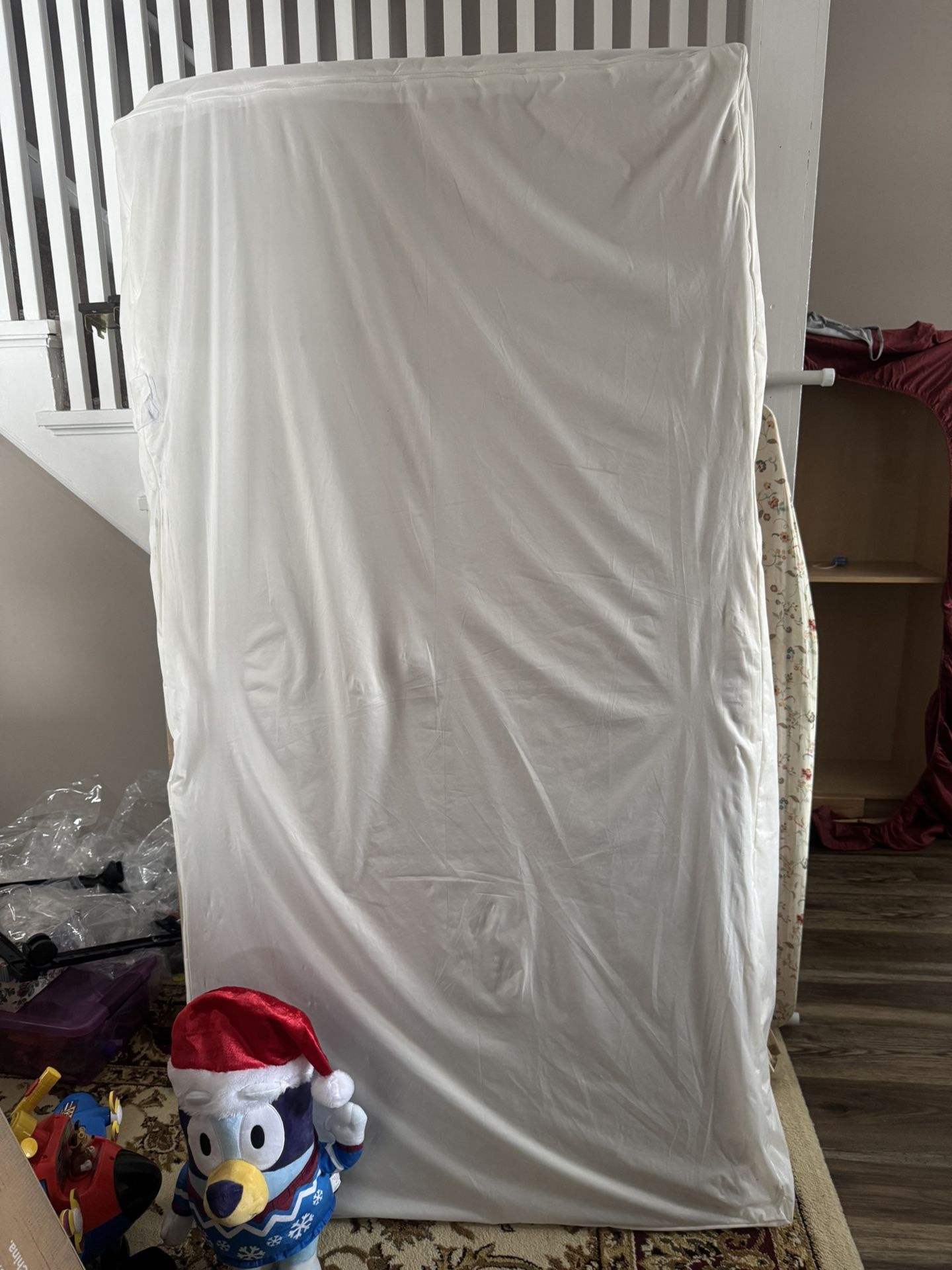Twin bed spring mattress. We upgraded my kids bed so we have an extra mattress. It’s in decent shape and has always had a mattress cover.