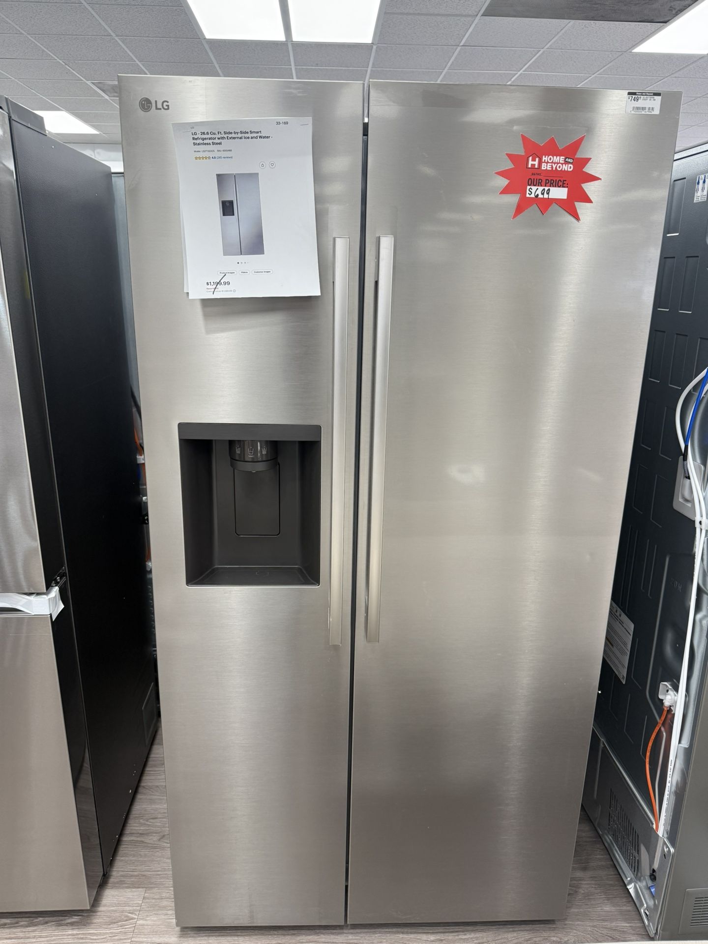 LG - 26.6 Cu. Ft. Side-by-Side Smart Refrigerator with External Ice and Water - Stainless Steel Model: LS27T3230S