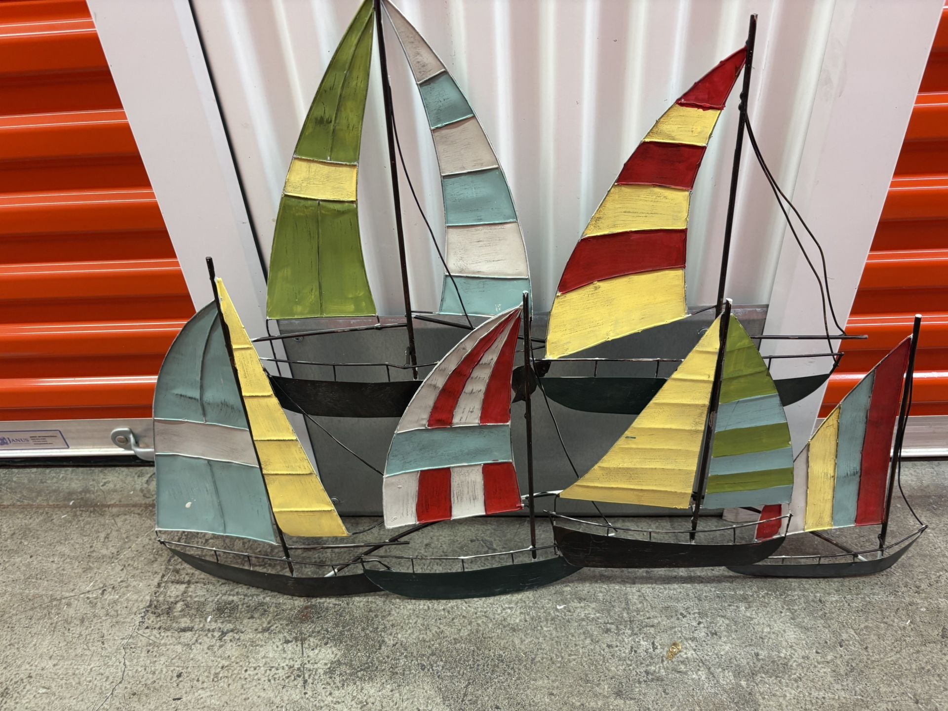 Wall Art done in metal of boats for a nautical setting.