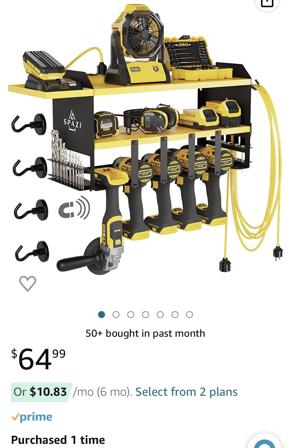 Brand new, and unopened! Same item is $65 plus tax on Amazon. Firm on price. Features: GARAGE ORGANIZERS AND STORAGE DRILL RACK to add a convenient and secure way to store your most prized power tools. Our drill storage rack comes with a tray, 4 magnetic hooks, & has 2 shelves that can hold drills, power tools, & other tools in place. STRONG LOAD CAPACITY on our cordless tool organizer can hold up to 30 pounds of tools!!. Our garage drill holder wall mount tool organizers come with 2 solid shelves so you can store screwdrivers, toolboxes, or other accessories. CONSTRUCTED WITH QUALITY IN MIND so you only ever need one power tool holder. This wall mount tool organizer is made from high-quality steel that provides superior strength and durability. INCLUDES EVERYTHING YOU WANT along with a tray that is perfect for drill chargers or other accessories you need to store. There are two slits at the top of our tool wall organizer and 4 magnetic hooks that can be put anywhere to hang different items. EASY ASSEMBLY PROCESS that is quick & comes with assembly instructions. Your power tool organizer wall mount will be up in a few minutes! For the ultimate garage wall organizer tool storage,