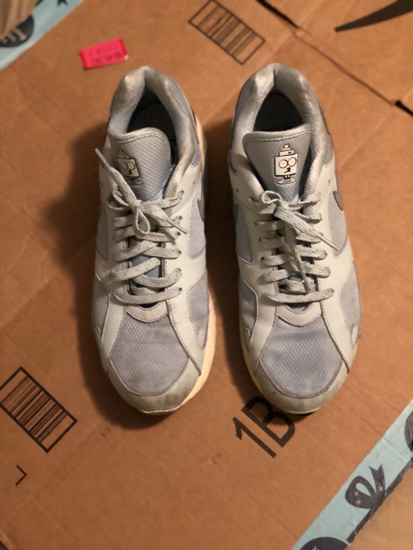 Air max 180 size 11.5 with box Air max 180 Ice from ice and fire pack that released 6 months ago In good condition 7.5/10 worn 10x Material changes color when scrub with water but similar to recent aj1’s releases but not so prevalent