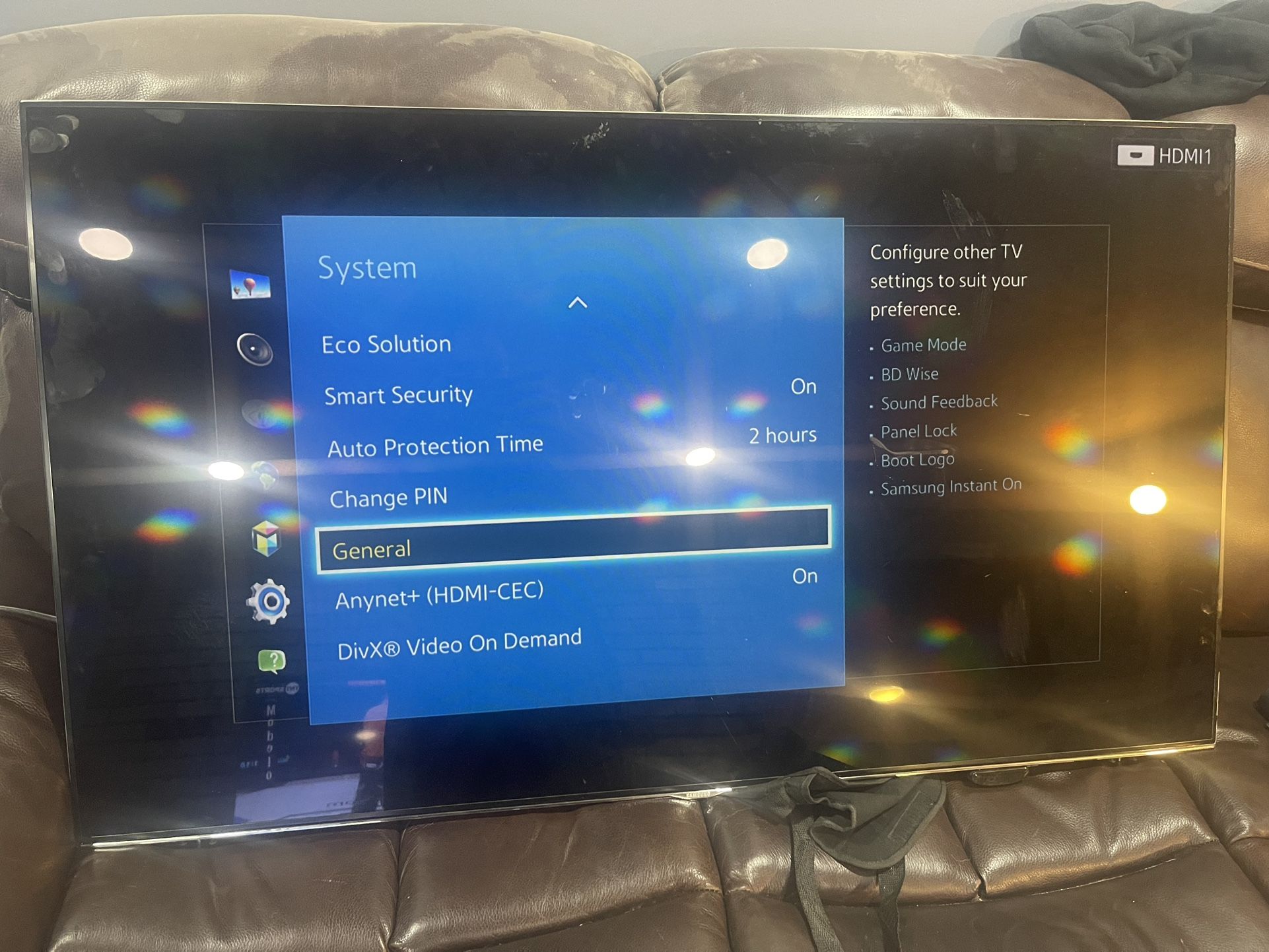 a Samsung UN55H7150AF model TV, a 55-inch Full HD Smart 3D LED TV