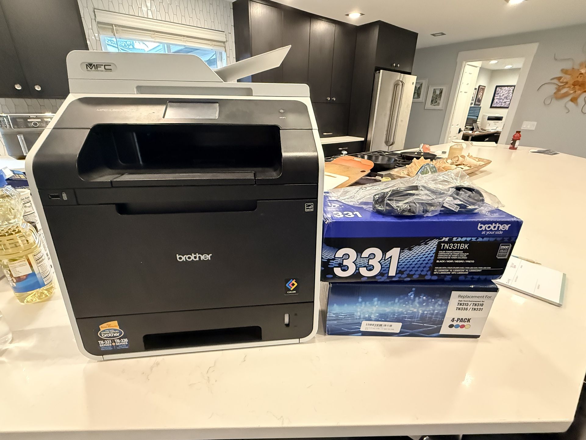 The printer prints full sheets of ink. It looks like the drum kit could be replaced and the printer would be fine. It comes with a full set of new ink and one unopened ink. The ink alone is worth $500. I have replaced the printer. I am hoping someone can use the ink cartridges instead of throwing them away. If someone also wants to try fixing the printer that’s a bonus!