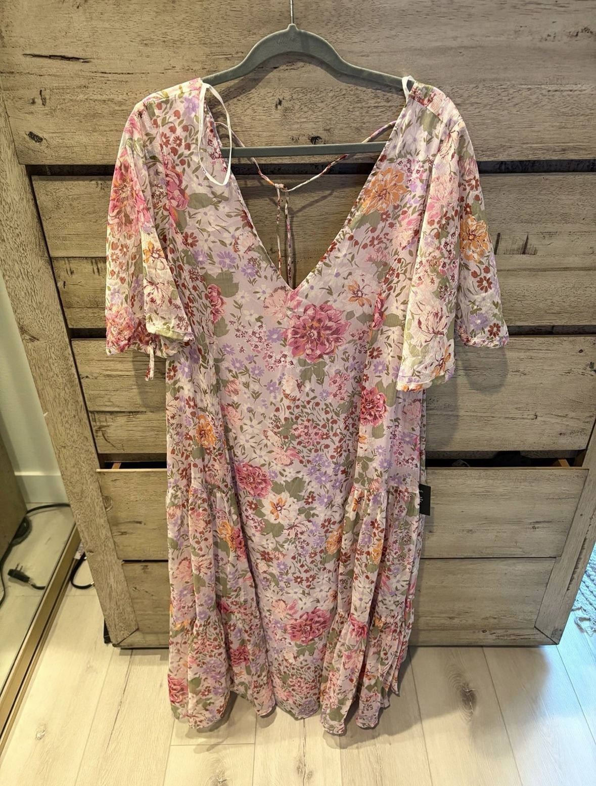 Lulus Floral Lilac Chiffon Short Sleeve Midi Dress. NWT