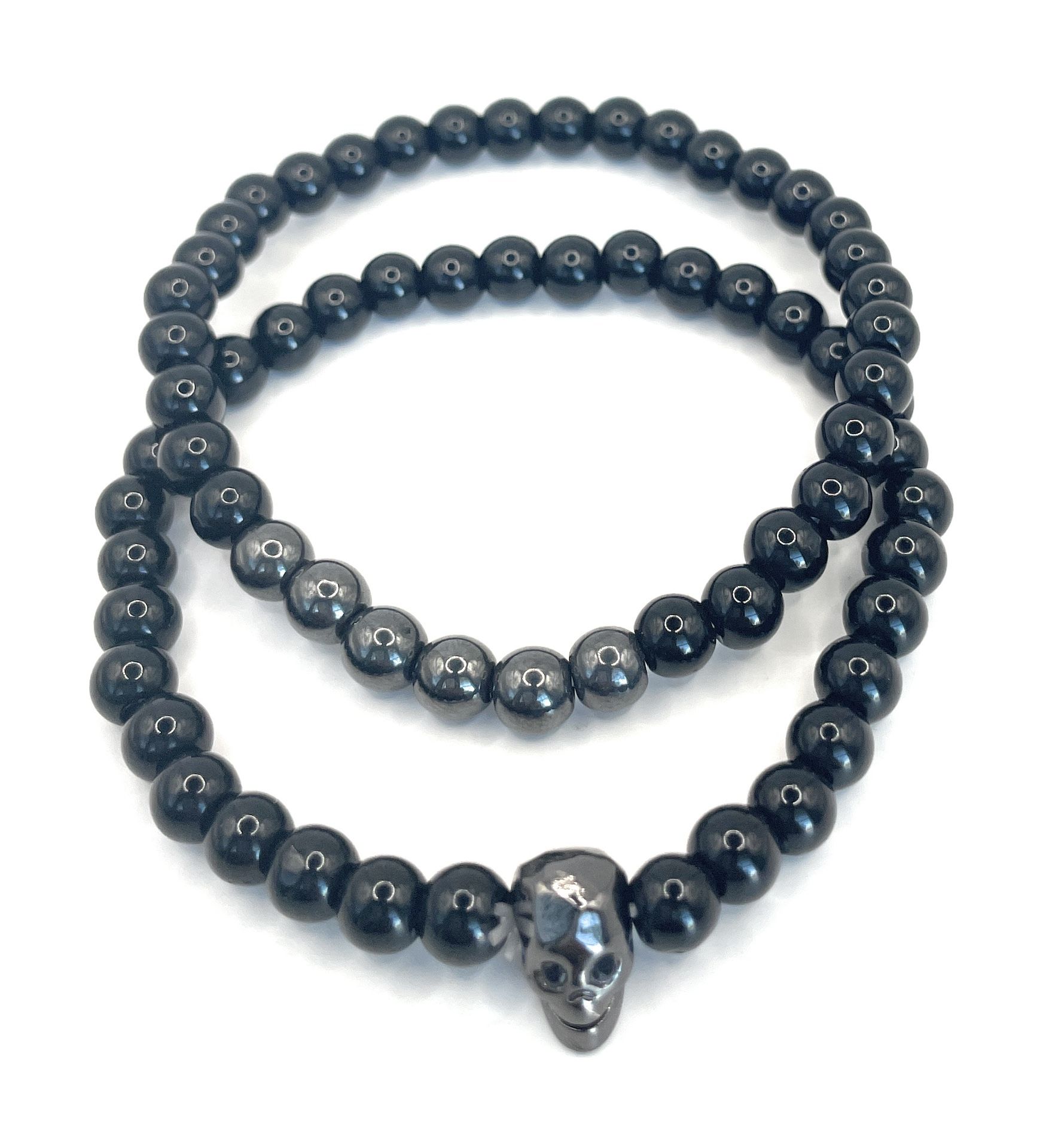 Double men’s beaded bracelet with skull 💀 in black on a adjustable string