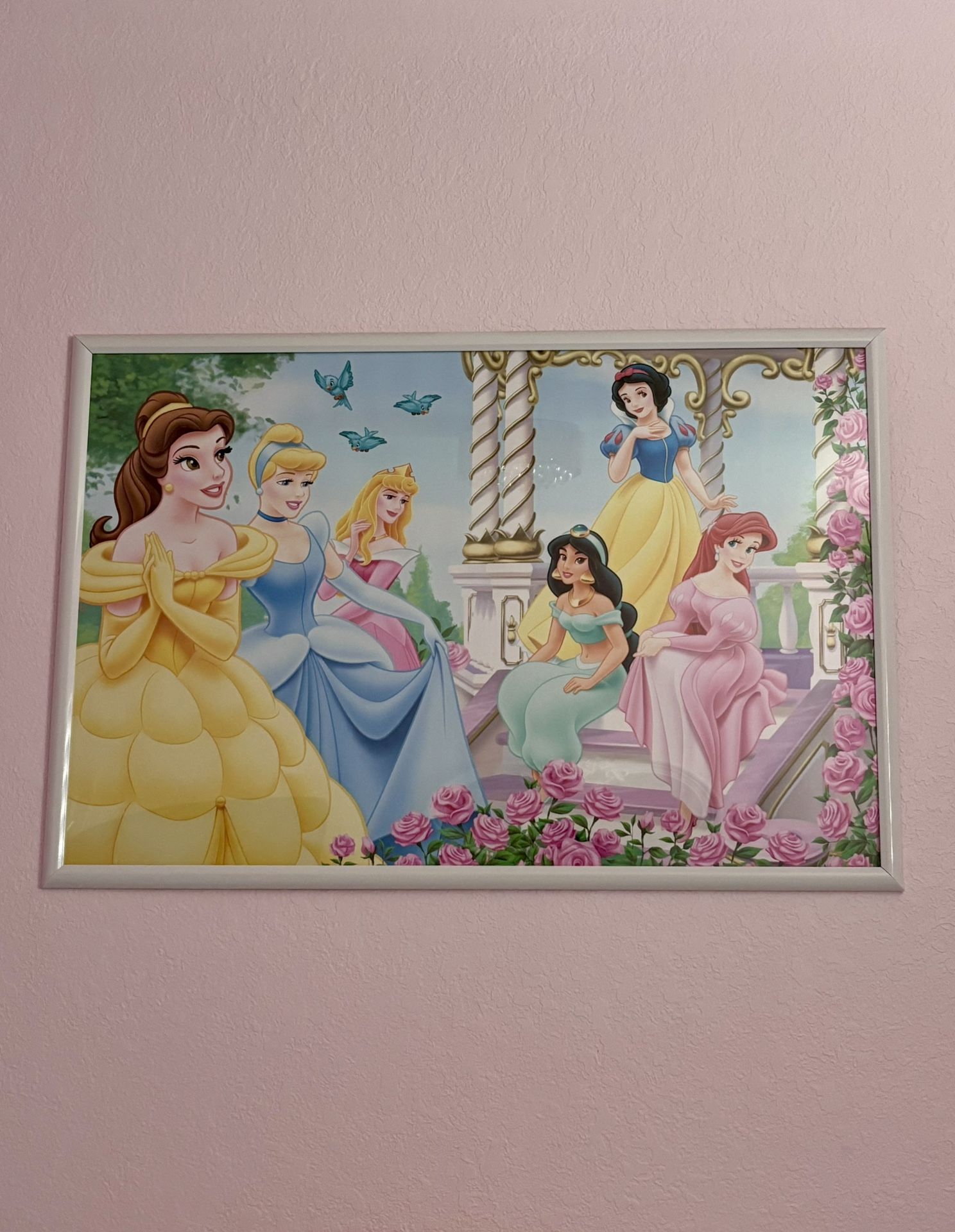 36x24 framed wall decor. Easy to hang up on wall and light weight. Safe for little girl’s room. No glass.