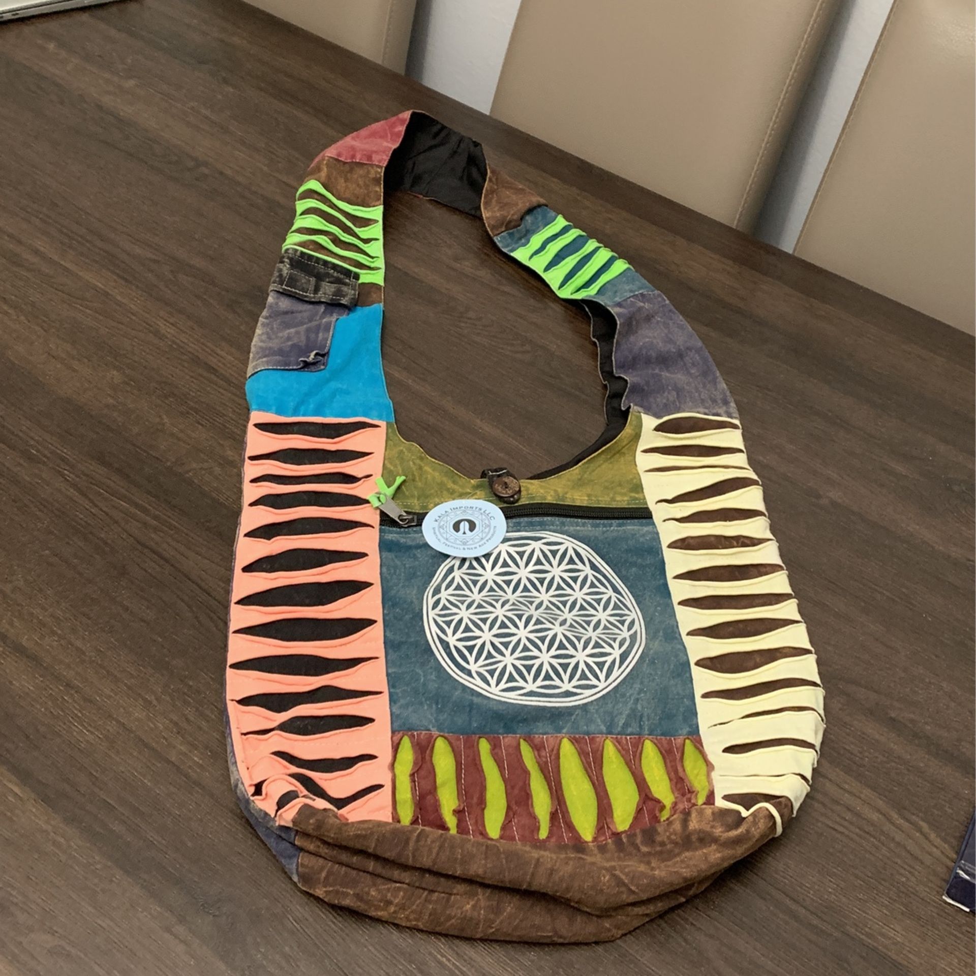 Bolsa hippie boho con parches A la moda ahora – increíble atención al detalle Bolsa de algodón de muy alta calidad, ligera, hecha a mano, con un diseño de retazos/teñido