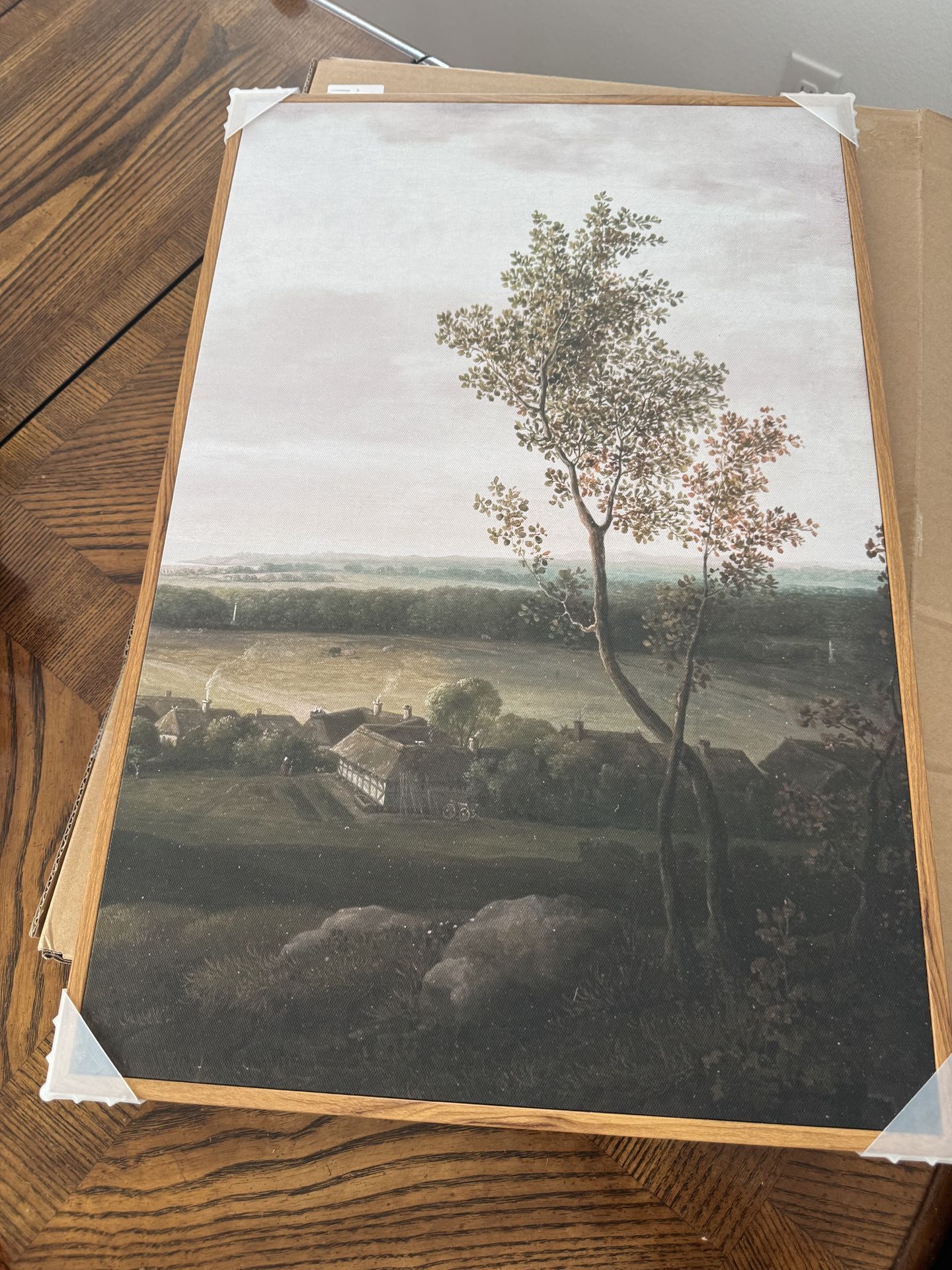 A large wood framed wall decor, classical oil painting, vintage landscape size 24x16.5” New