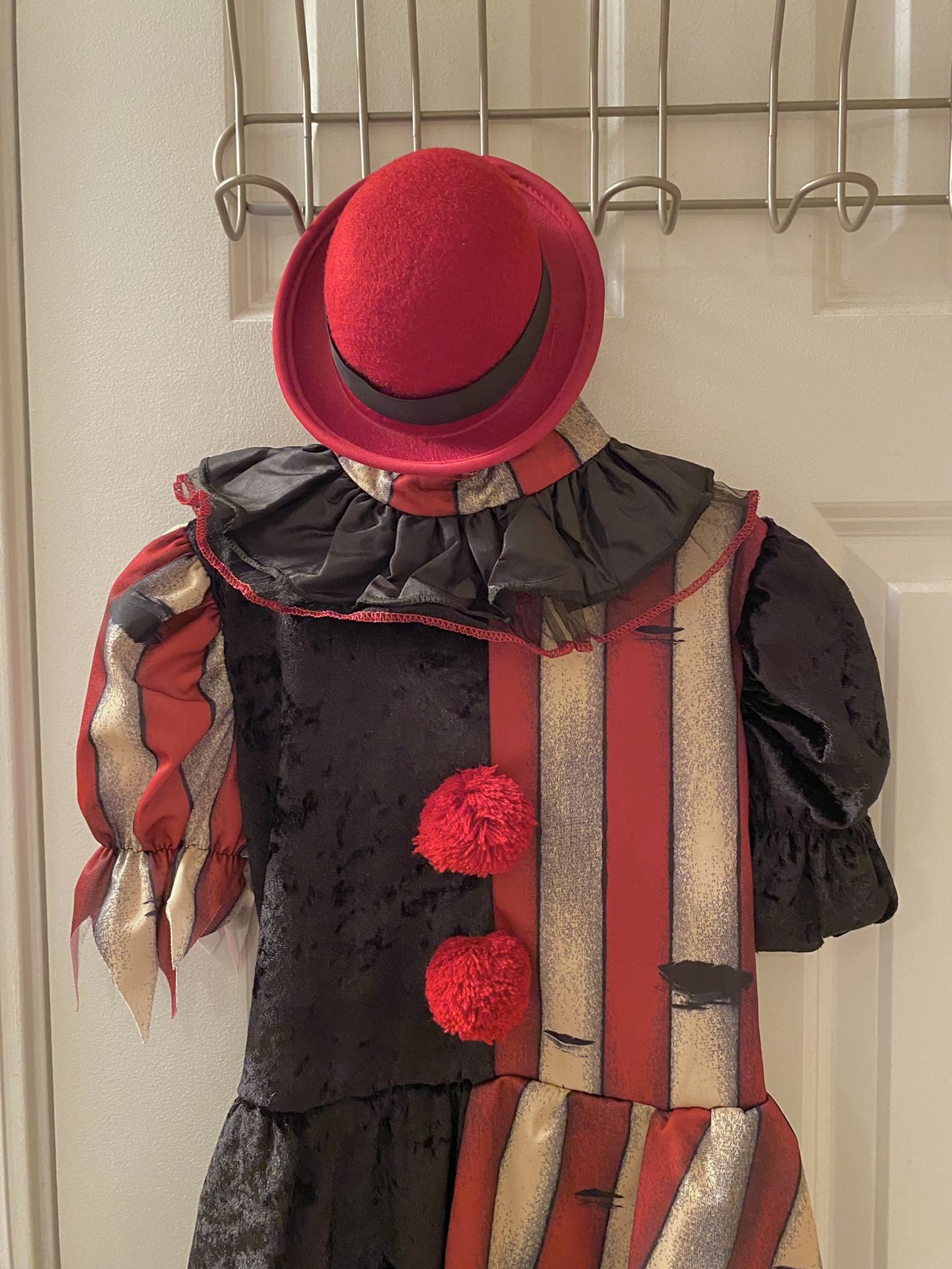 Girl's 'Twisted Circus Clown' Halloween Costume in Fantastic Condition. *Little Girl's Size Small 4-6 *Set includes: **BALLOON & BOOTS NOT INCLUDED** -Pullover dress -collar and 2 wrist cuffs -mini hat -stockings