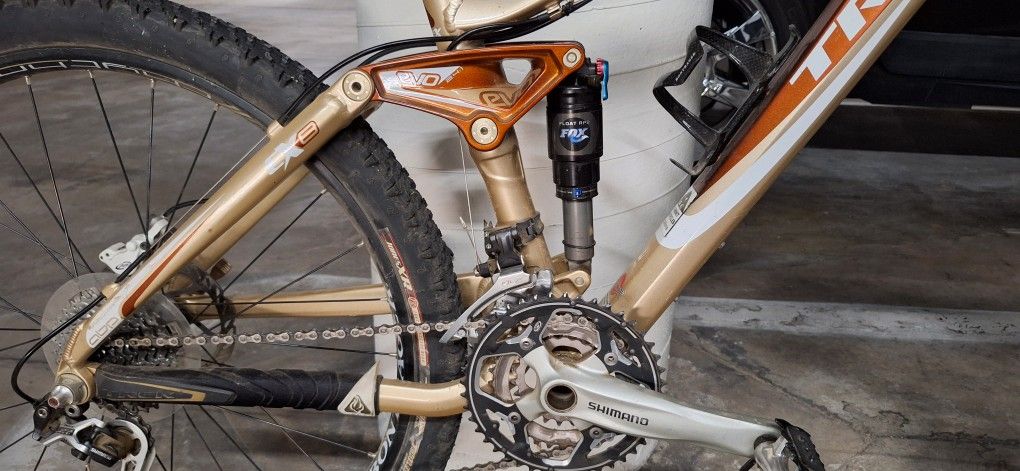 2009 Excellent condition Enthusiast level Full suspension trail MTB Medium size frame Aluminum frame Anti breaking pivot (ABP) Juicy five hydraulic disc brake system FOX Float RP2 rear shocks FOX Float RL front forks Shimano Deore SLX derailleur Shimano SLX trigger shifter Bontrager 26 in. Tubeless Ready Bontrager quick release front and rear wheels Bontrager saddle Minor scrape on seat Always garaged Recent tune up, lubrication, and cleaning (less then 30 days ago) #trek #mountainbike #mb #specialized #gt #bike #offroad #camping #trailriding #trailer