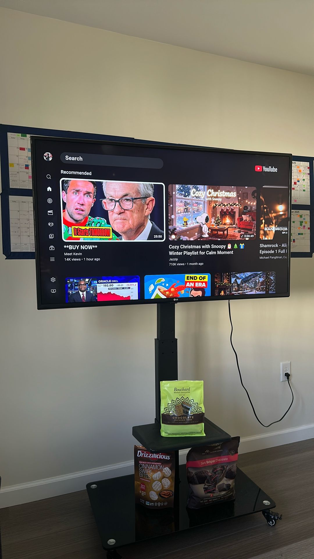 Working remote, LG brand and 50” size TV with a TV stand and brackets