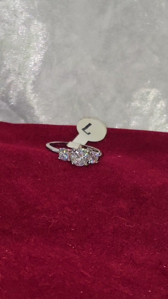 Brand New sz 7 very pretty Sterling silver, Moissanite, three stone Engagement, Anniversary, cocktail, gift, evening out ring. $45 pick up in Morris, NO HOLDS!!