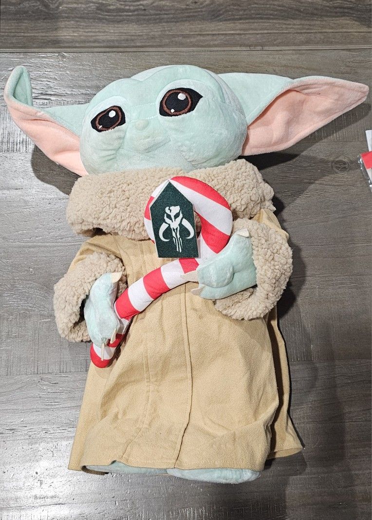 Star Wars THE CHILD Holiday Greeter 18" Plush Baby Yoda holding Candy Cane