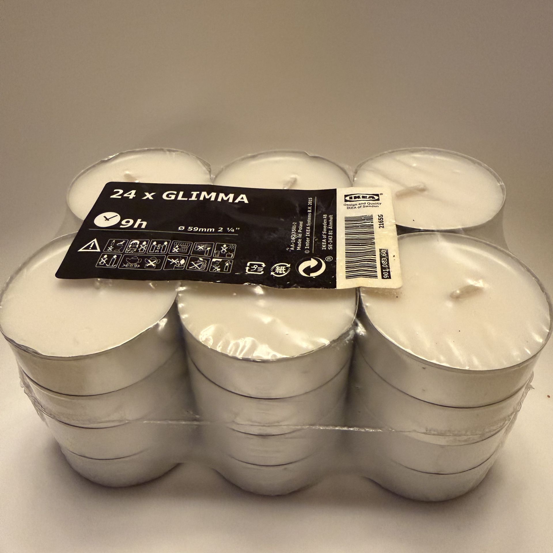 IKEA GLIMMA 24 Pack Tea Light Candles Large Unscented 9 Hour Burn White New