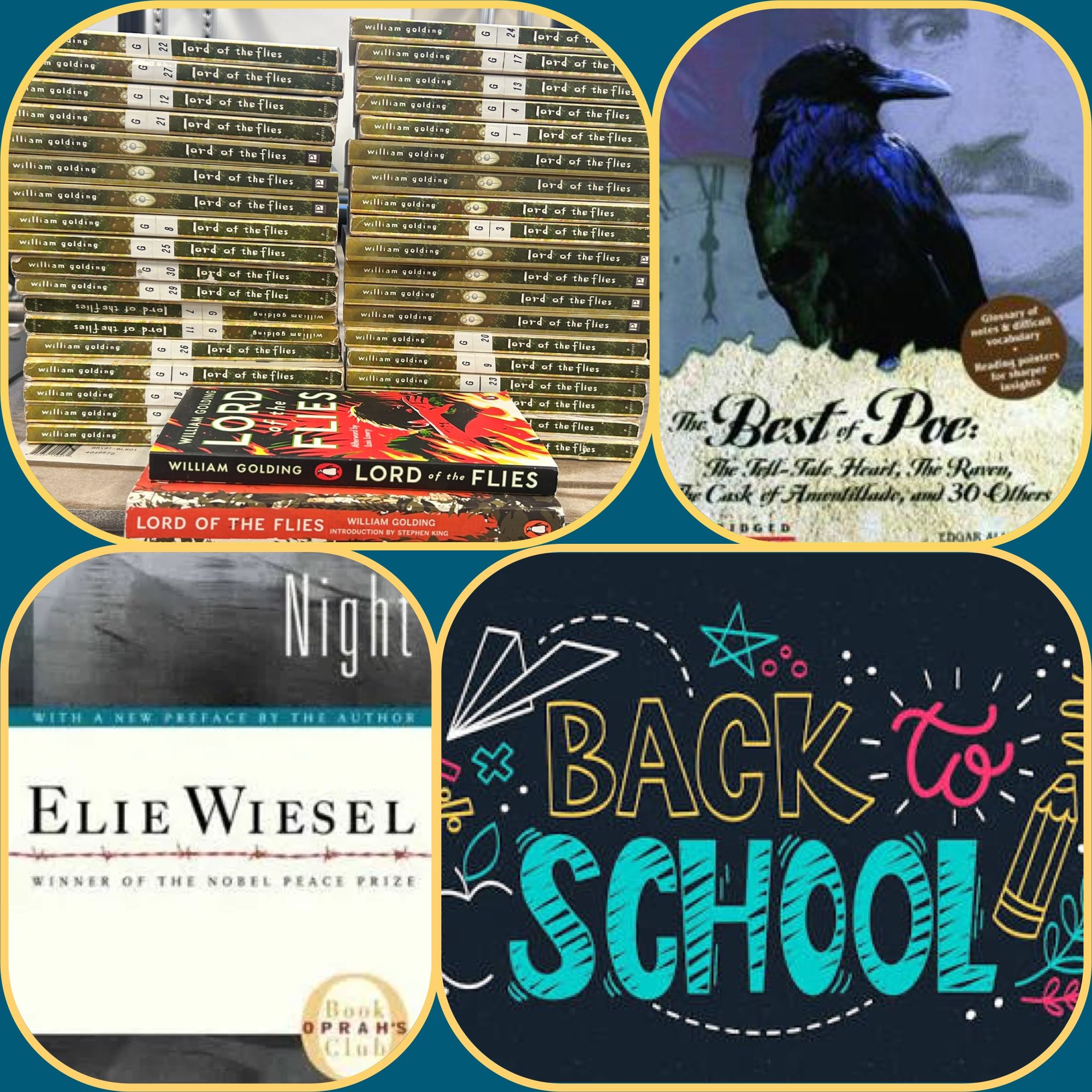 These books can be sold as an entire lot or individually. 📚ENTIRE LOT $140 📕 NIGHT $7 each 📖 LORD OF THE FLIES $5 each 🐦⬛ THE BEST OF POE $3 each •Night (39 Copies- BRAND NEW) • Lord of the Flies (39 Copies and audio CD) • The Best of Poe (24 Copies)