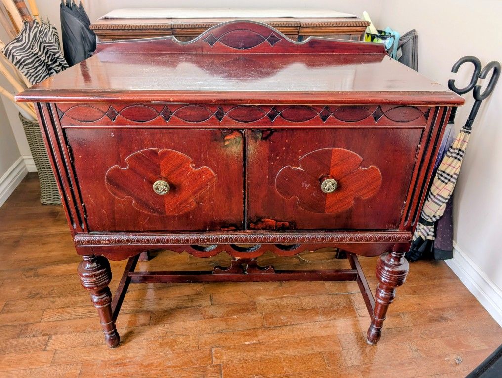 Antique Cherry Wood Two Door Cabinet Console