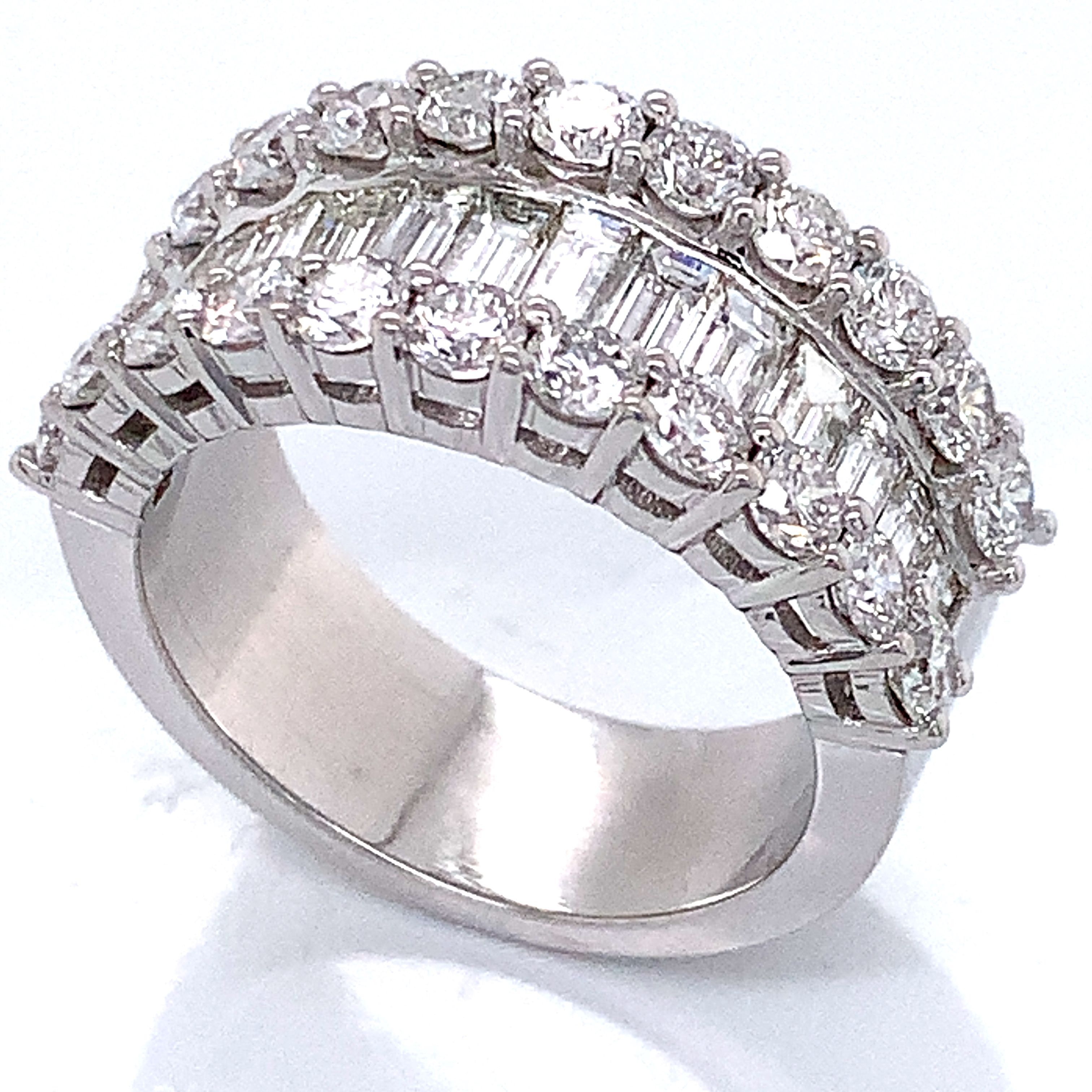 Detailed Description Condition: New with tags, never used Material / Metal: 14k Solid White Gold, Tested, Guaranteed. Gemstone: Diamonds 100% Genuine, Natural, Not Treated Gemstones Weight: 22 Round Cut Diamonds = 1.82 Total Carat Weight 15 Baguette Cut Diamonds = 1.46 Total Carat Weight Gemstones Color / Clarity: G Color / SI1 Clarity Ring Width Gallery: ~ 3/8 Inch (10.0 mm) Total Weight: 10.80 Grams Ring Finger Size: # 6.75 ** Resizing Available Upon Request **