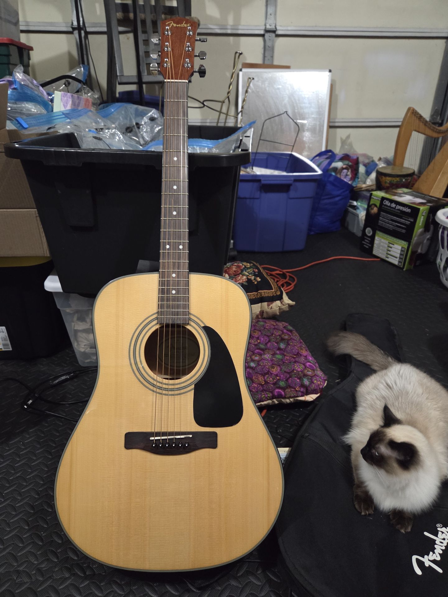 Solid spruce top with mahogany back/sides with a gig bag, tuner, straps, and accessories. Gorgeous guitar, we just have a few too many (blasphemy! We actually just need money) Pickup near Wapato Park in Tacoma. Will also be available at our yard starting Fri-Sun, see other post for info!