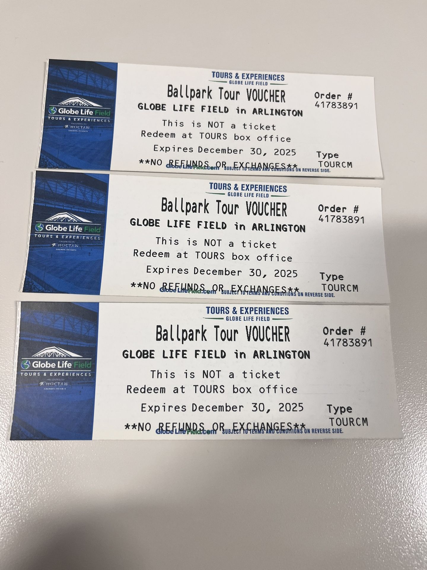 Globe Life Park Tour ( 3 Tickets )