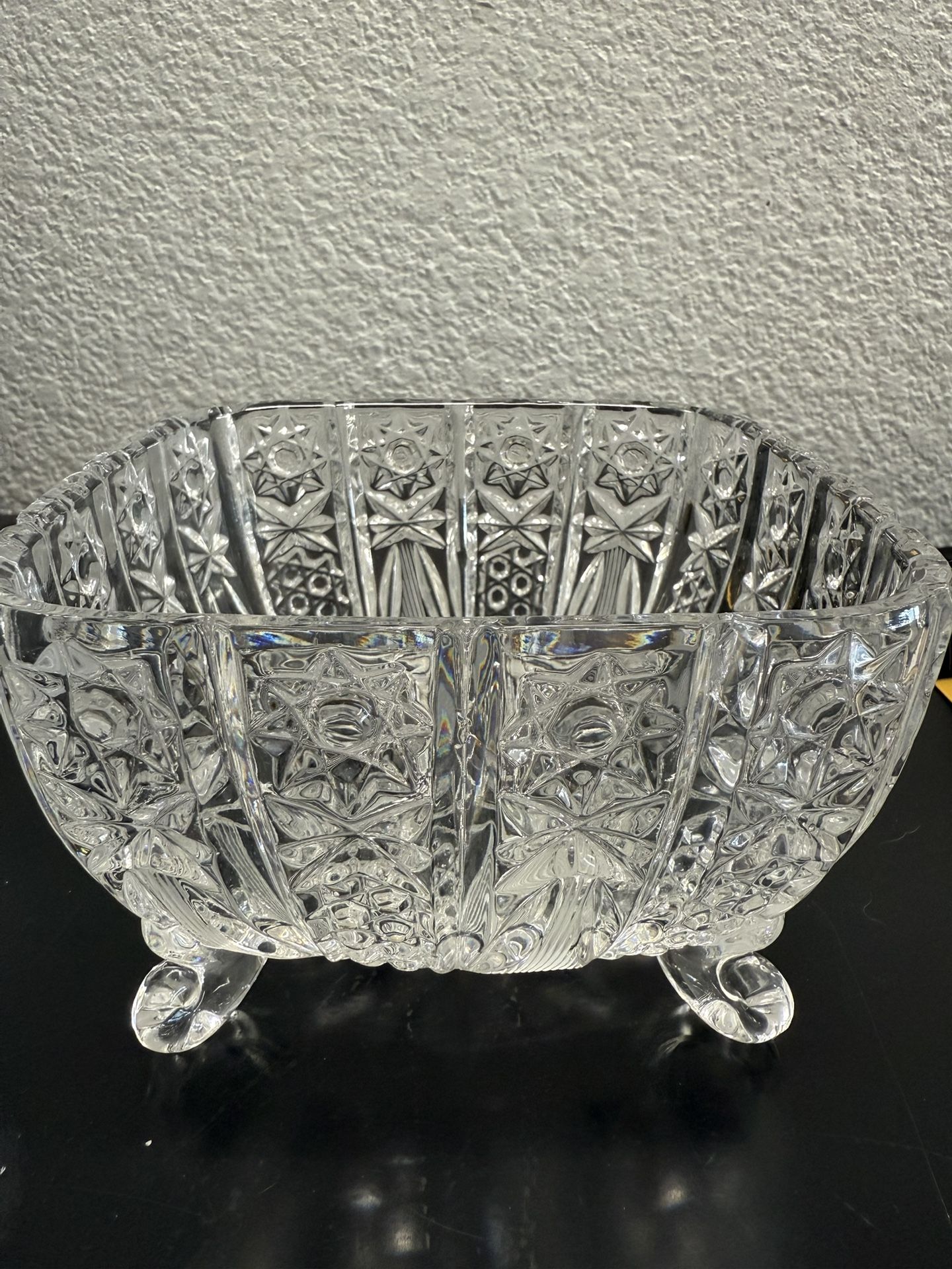 Vintage Crystal Dish E & R Golden Crown Western Germany Footed Snack Bowl