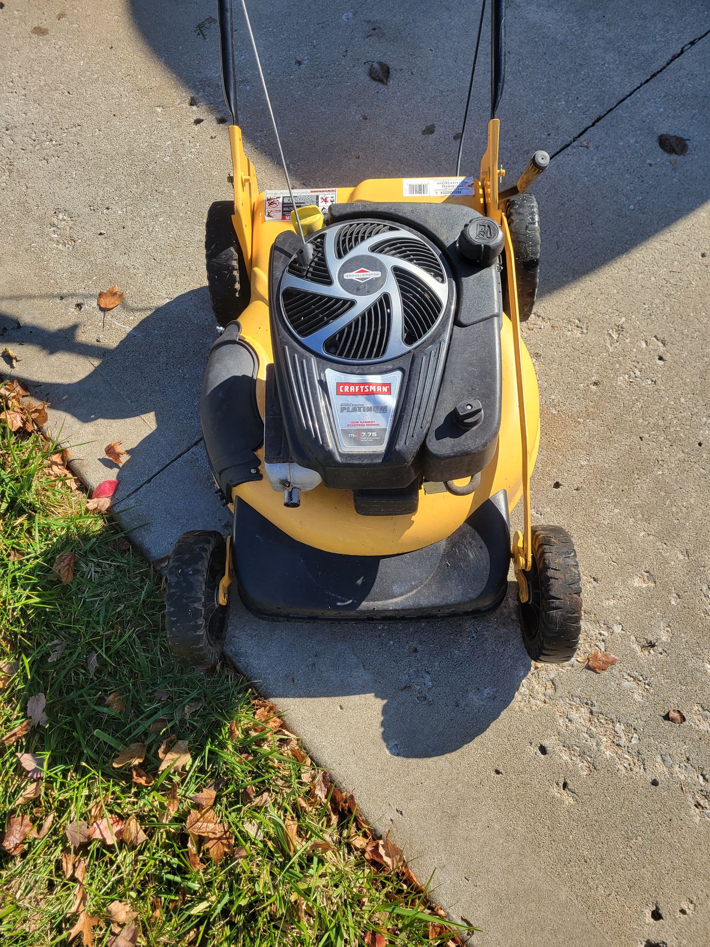 Craftsman175 cc Briggs engine fresh oil. 21" blade sharpened. New air filter + drive cable. Rear wheel drive and one lever adjusts all 4 wheel heights.
